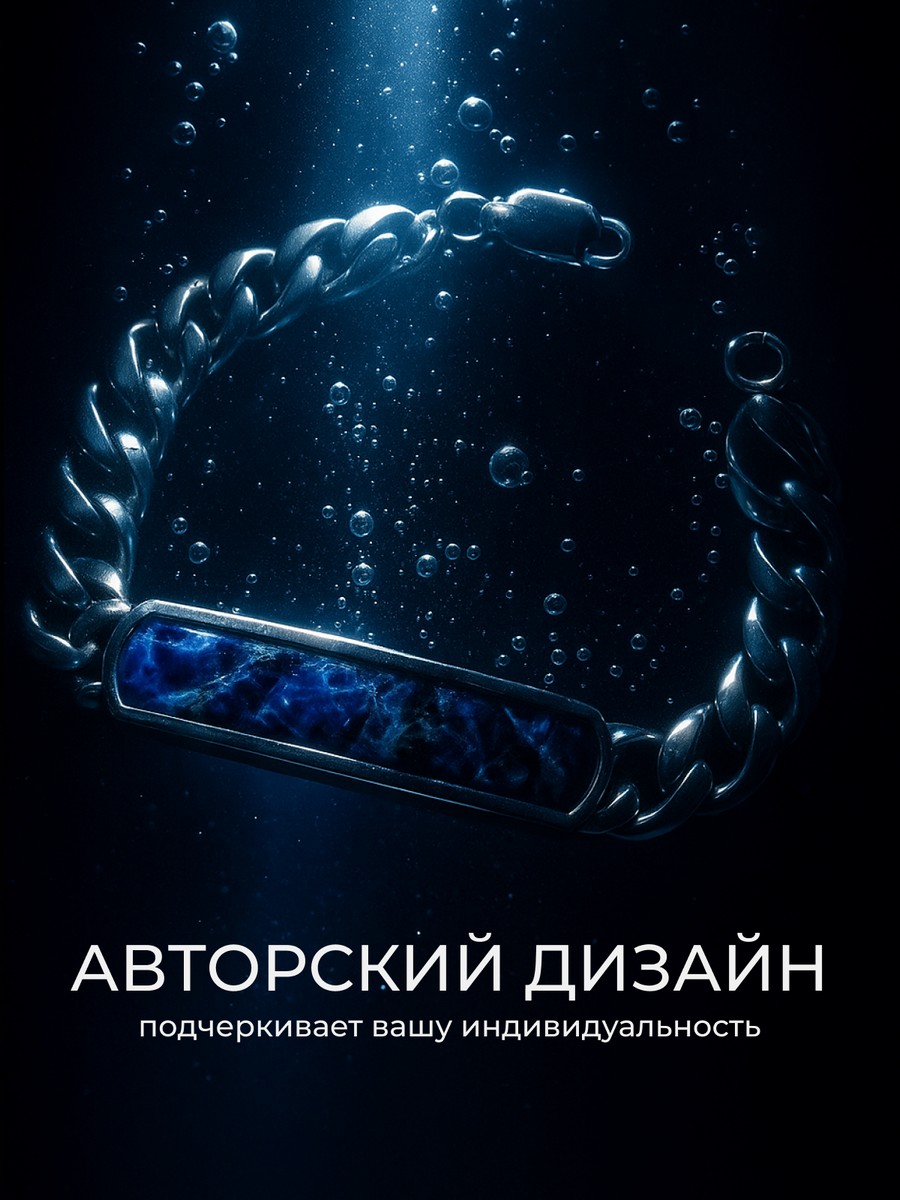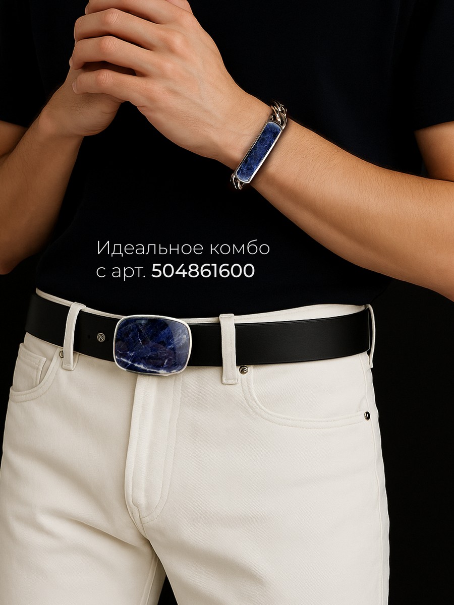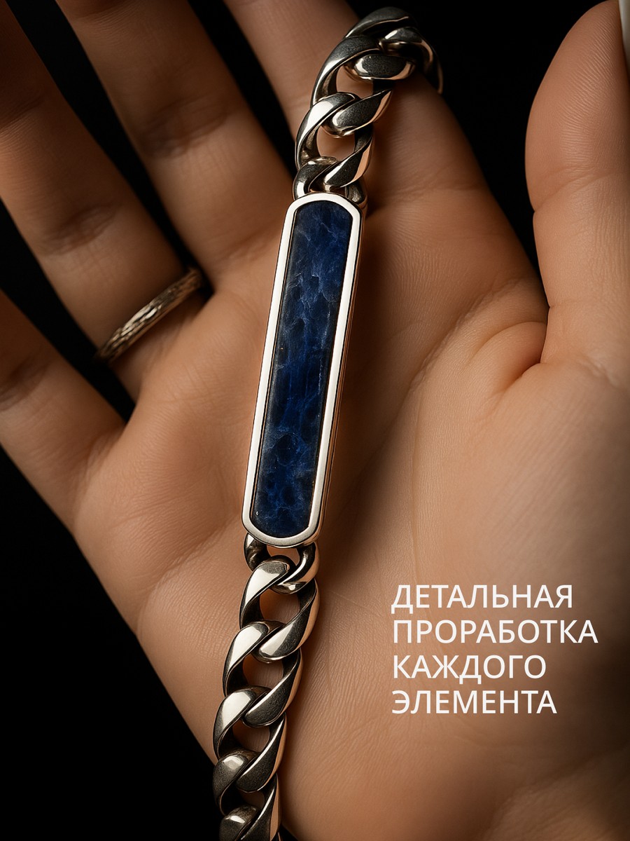 Браслет 1747Со выполнен из серебра 925 пробы и украшен натуральными вставками: 1 Содалит пластина 8,5 мм на 43,5 мм, вес 2,9 карат