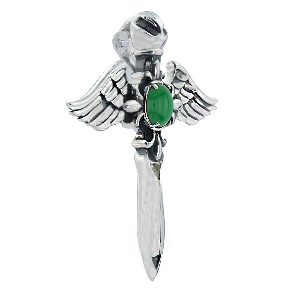 Подвеска 1931Агз выполнена из серебра 925 пробы и украшена натуральными вставками: 1 Агат окрашенный зеленый кабошон овал 7 мм на 9 мм, вес 2.03 карат