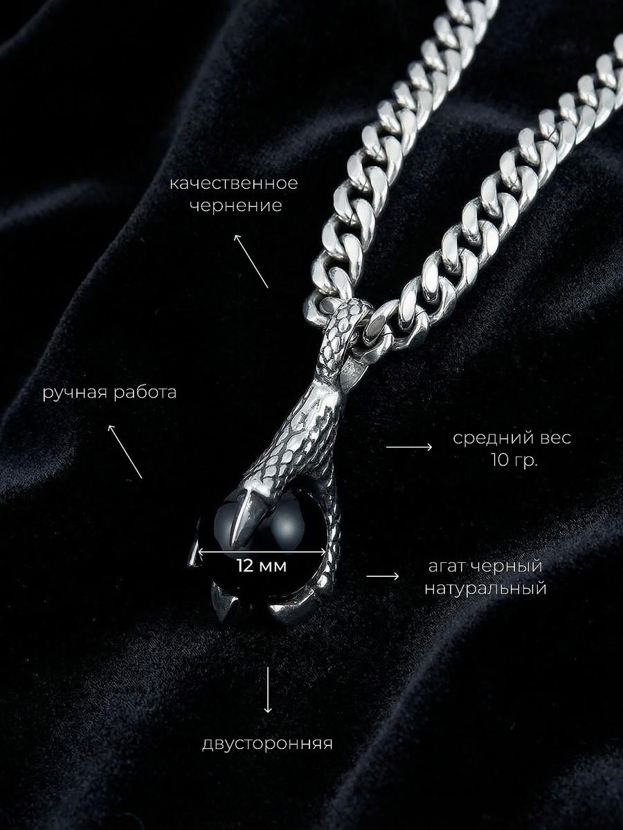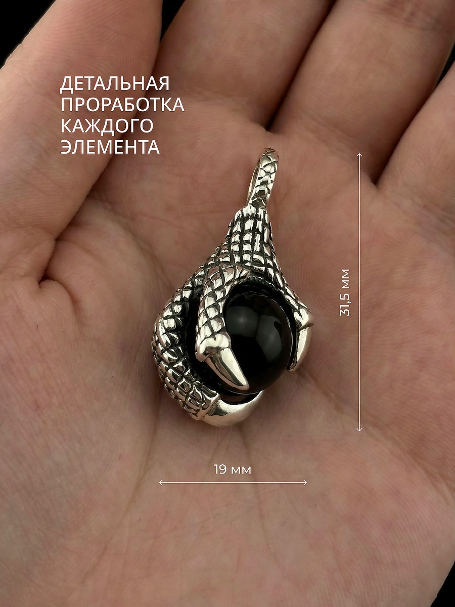 Подвеска 1746Агч выполнена из серебра 925 пробы и украшена натуральными вставками: 1 Агат черный шар 12,0 мм, вес 12,03 карат