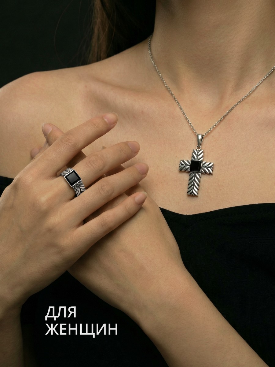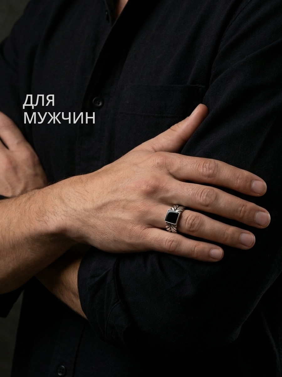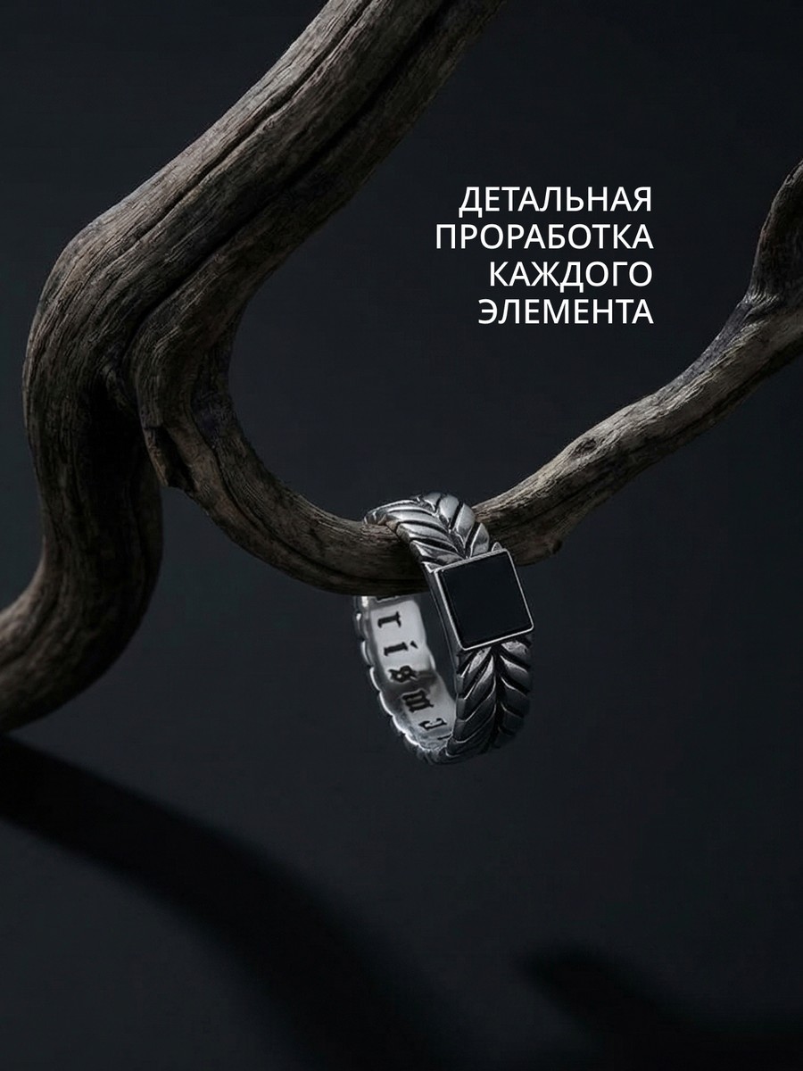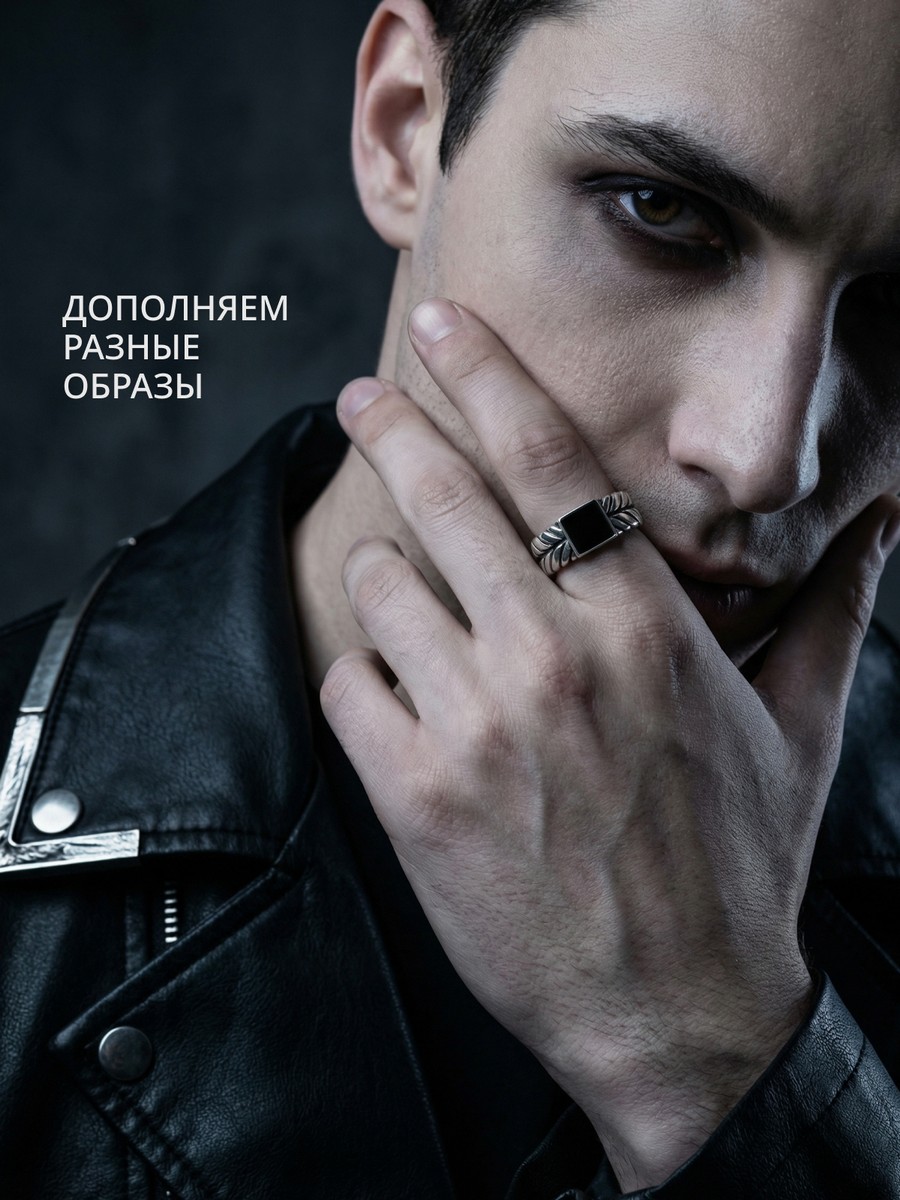 Кольцо 1901Агч выполнено из серебра 925 пробы и украшено натуральными вставками: 1 Агат черный пластина 7 мм на 7 мм, вес 1,283 карат