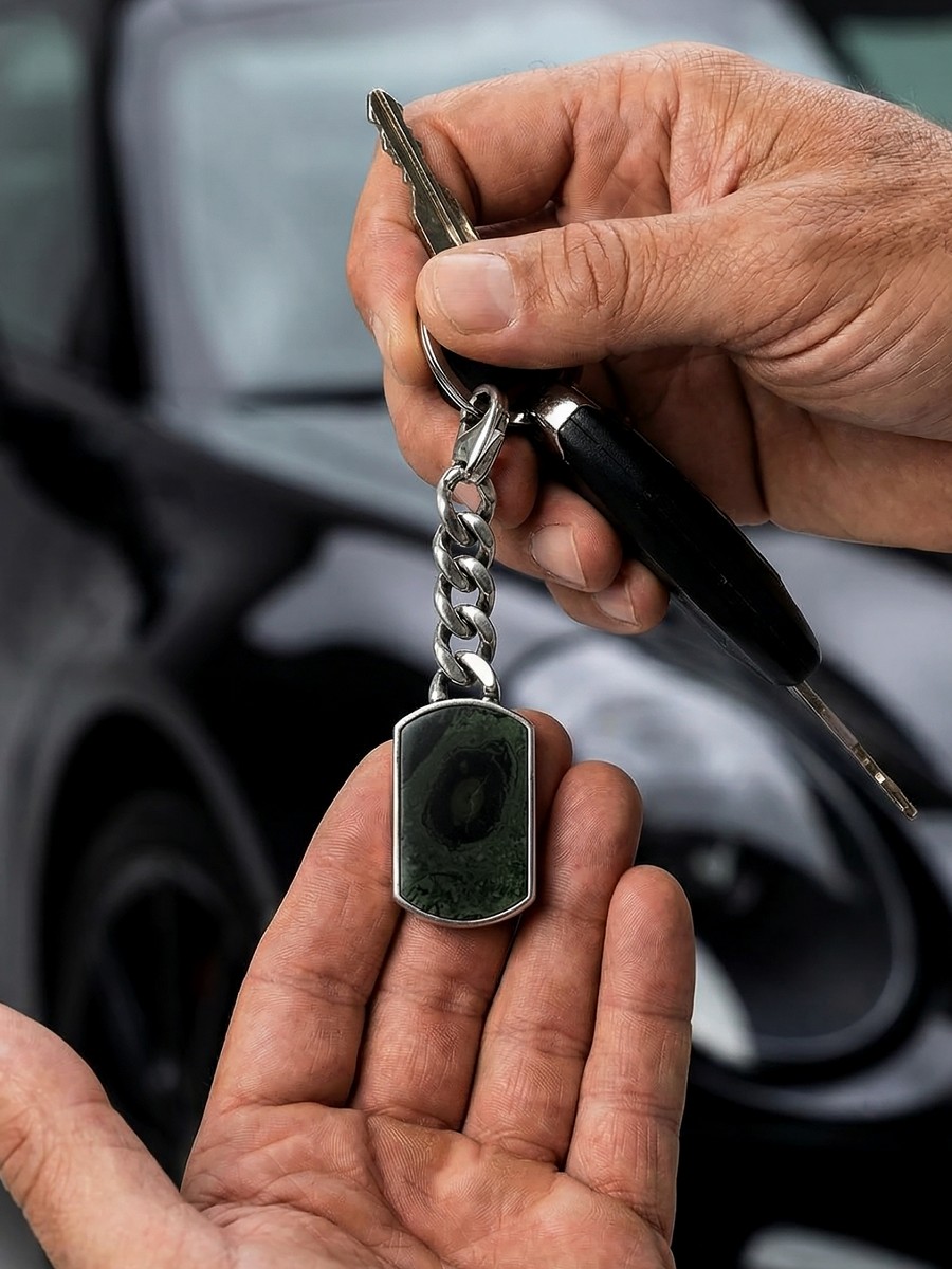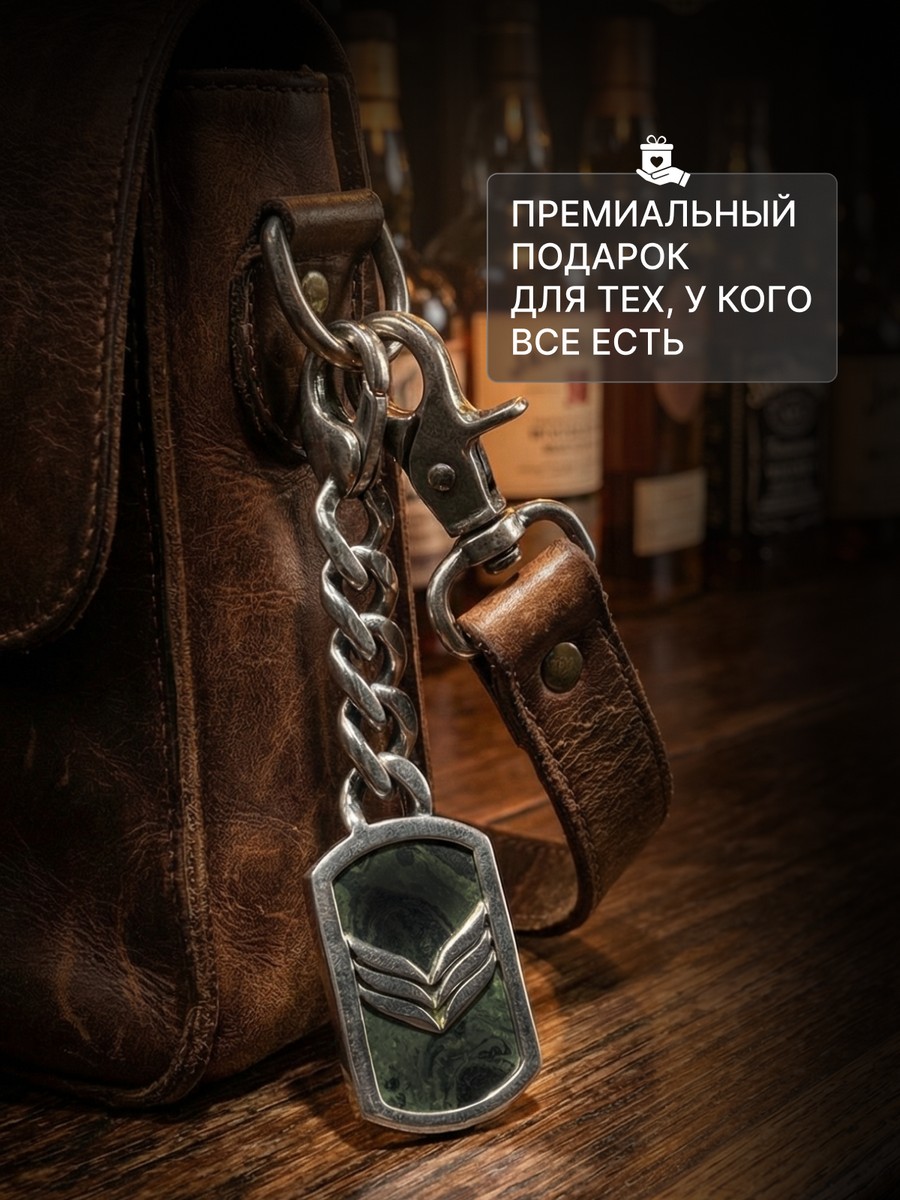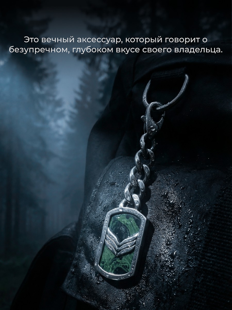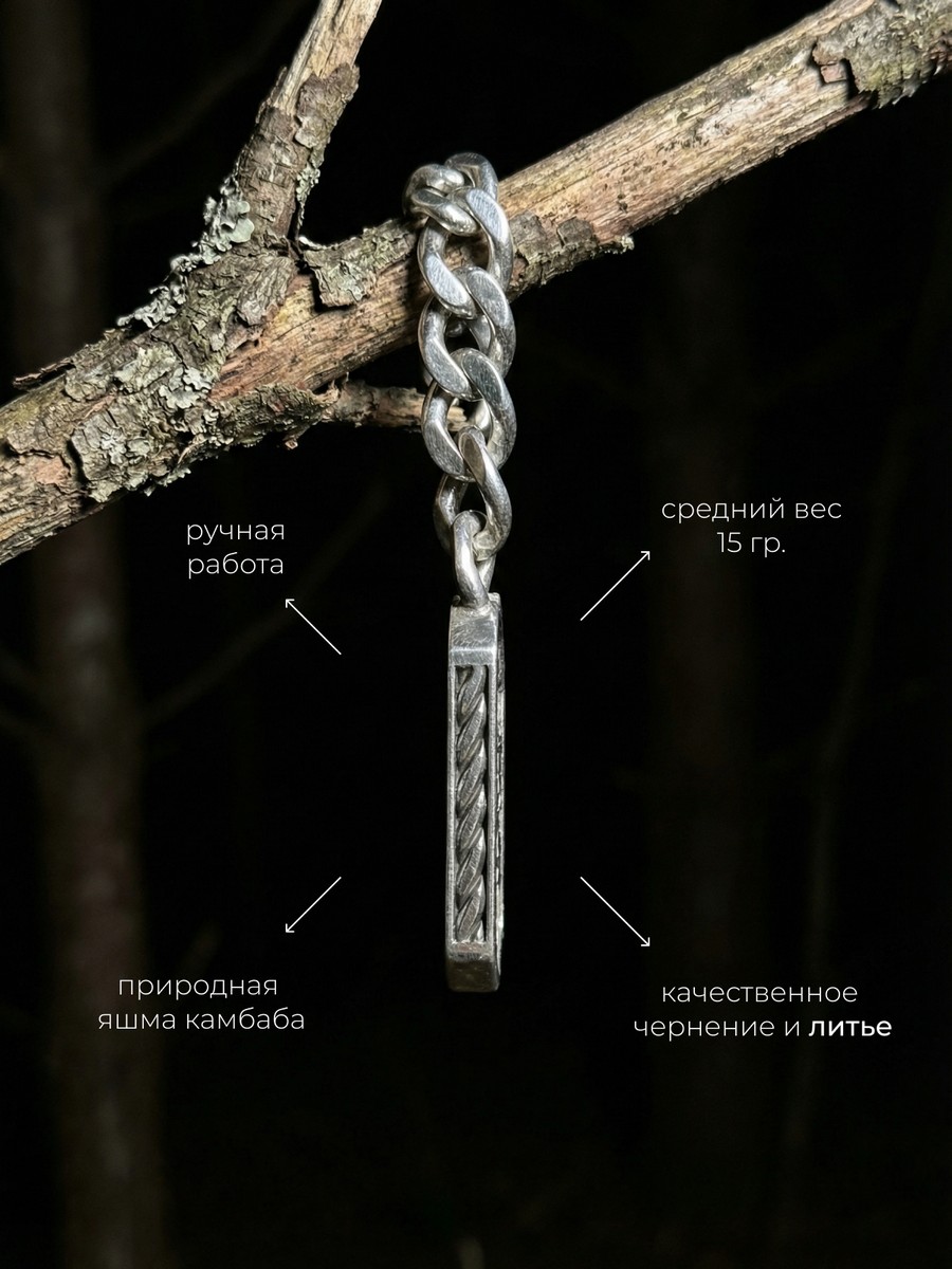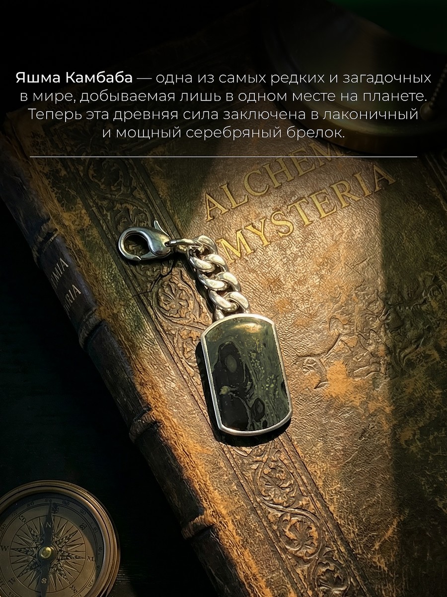 Брелок 1747Як выполнен из серебра 925 пробы и украшен натуральными вставками: 1 Яшма океаническая Камбаба пластина 16,5 мм на 28 мм, вес 3,97 карат