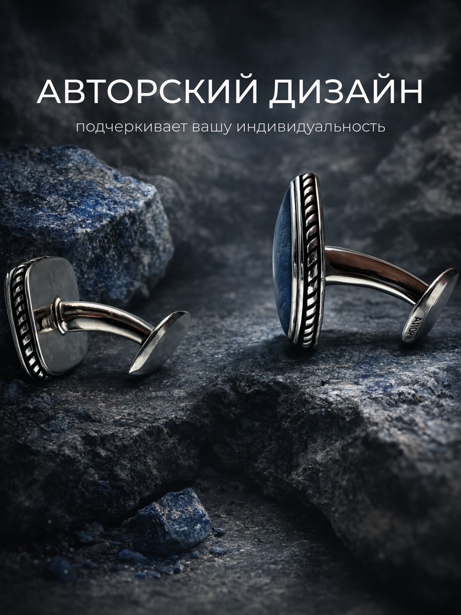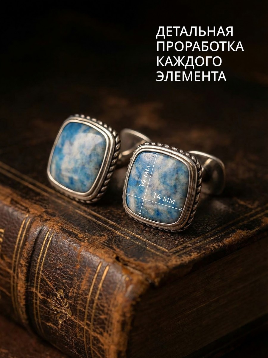 Запонки 1747Ла выполнены из серебра 925 пробы и украшены натуральными вставками: 2 Лазурит 14 мм на 14 мм, вес 3.36 карат