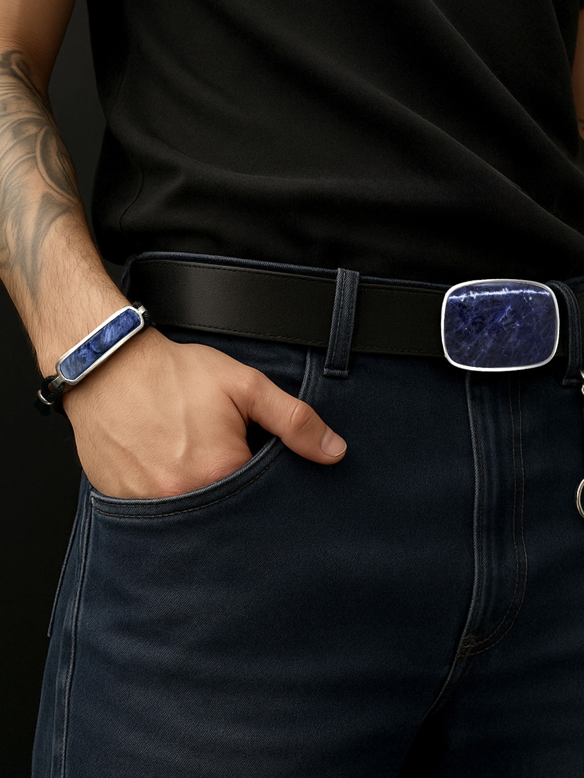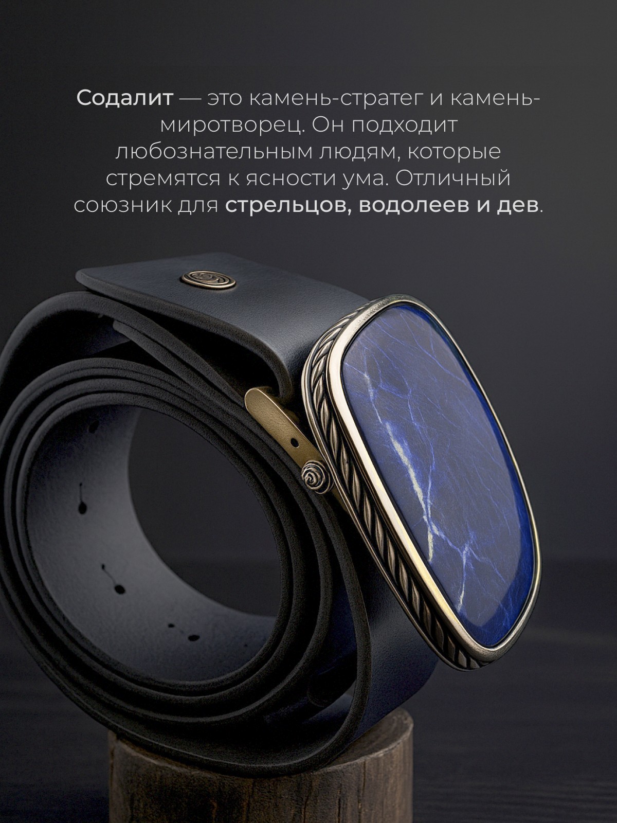 Пряжка 1743Со выполнена из серебра 925 пробы и украшена натуральными вставками: 1 Содалит 50 мм на 66,5 мм, вес 44.46 карат