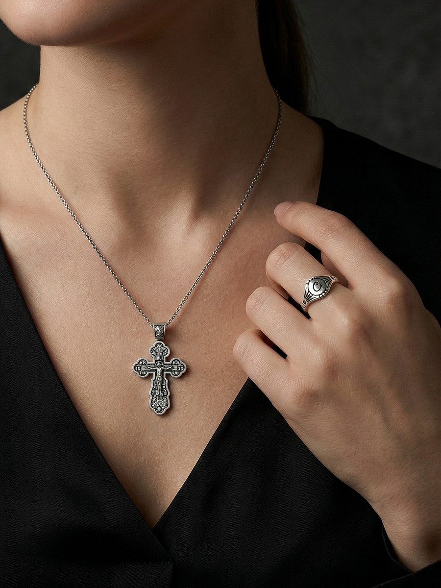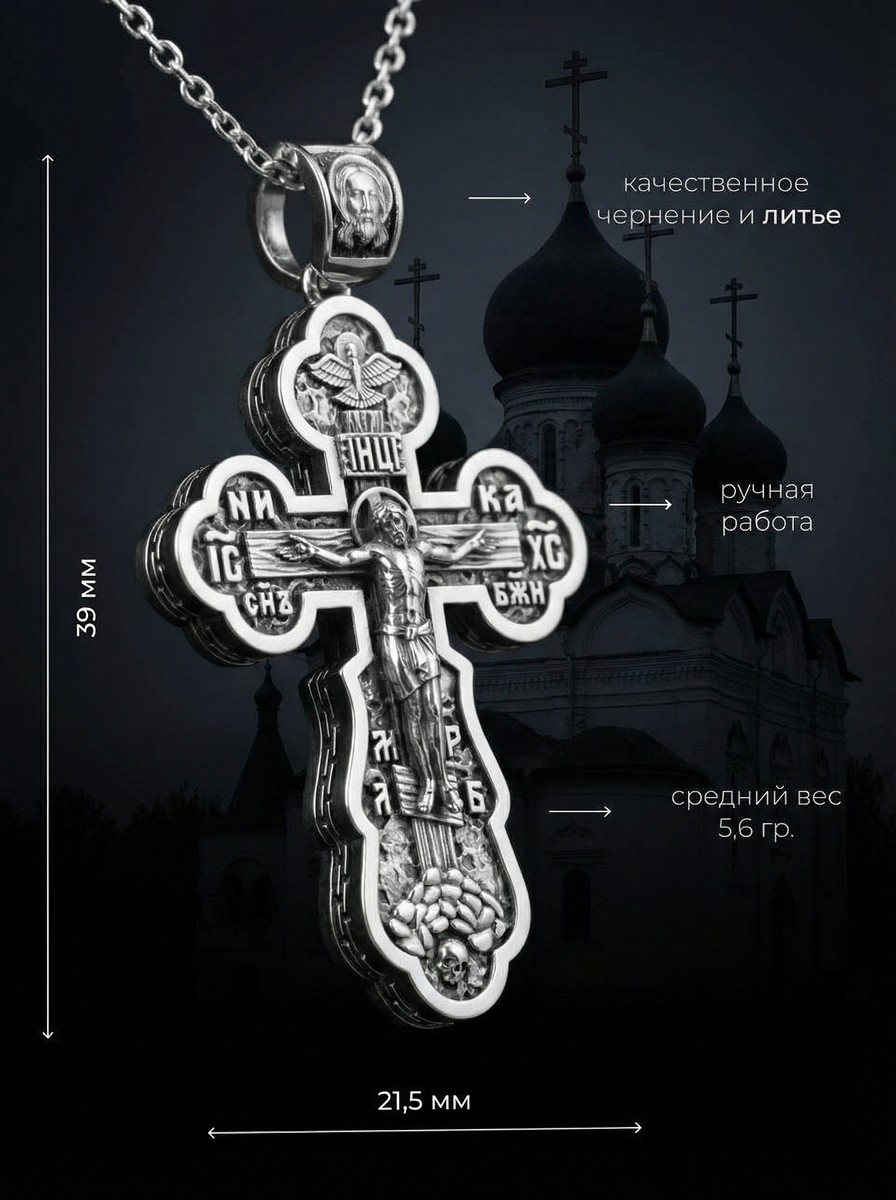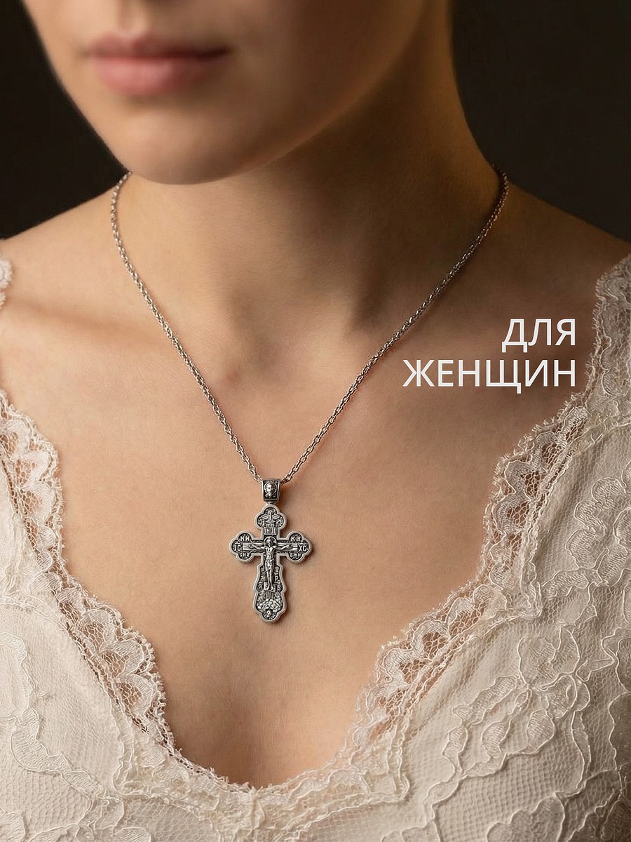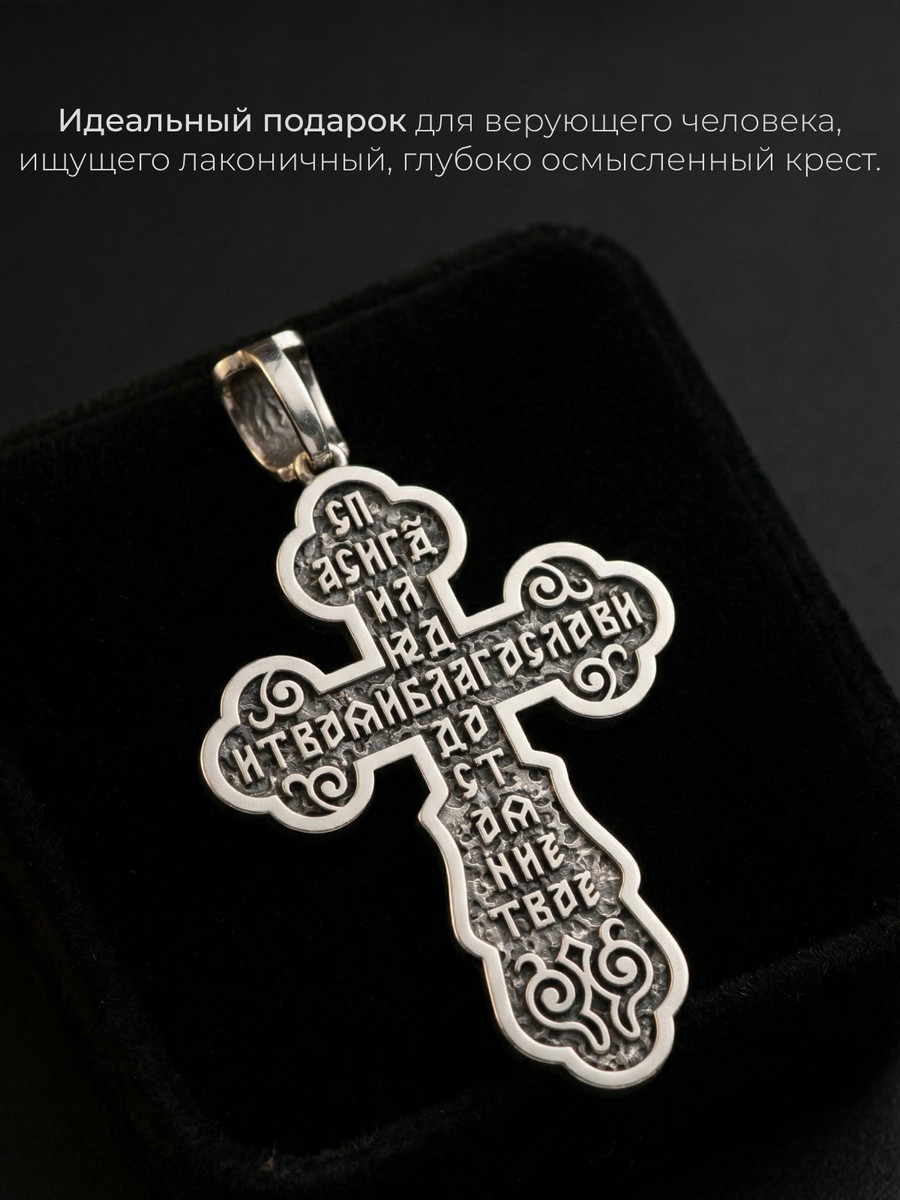 Подвеска 1001 выполнена из серебра 925 пробы и украшена натуральными вставками: б/к Животворящему Кресту Господню карат