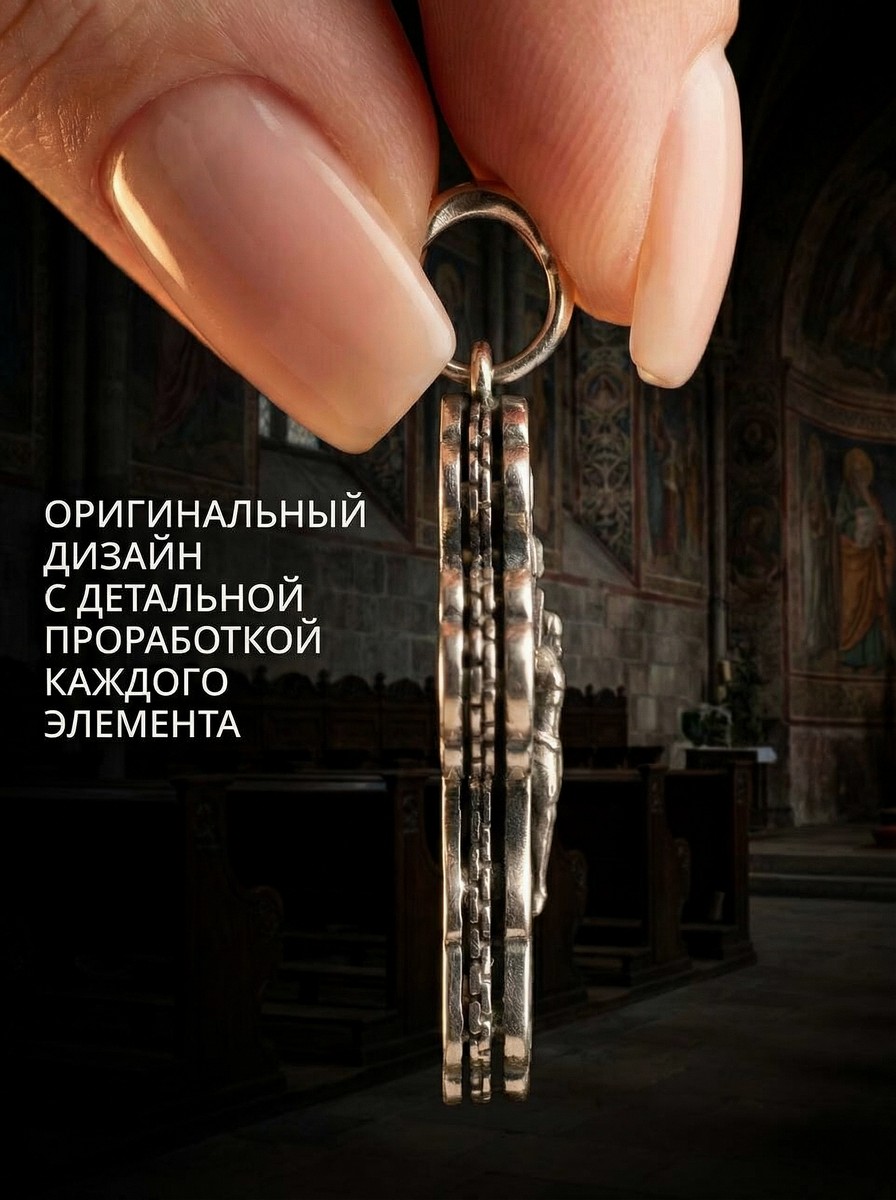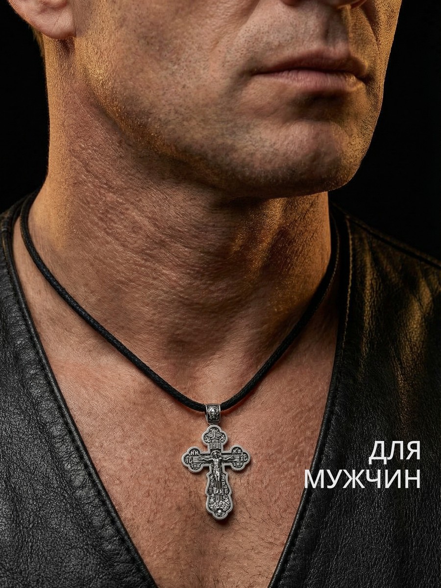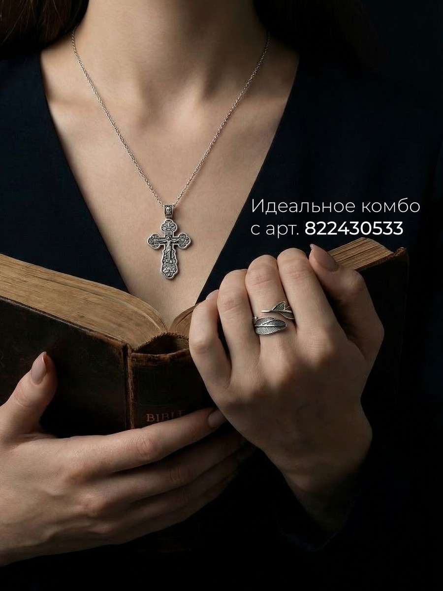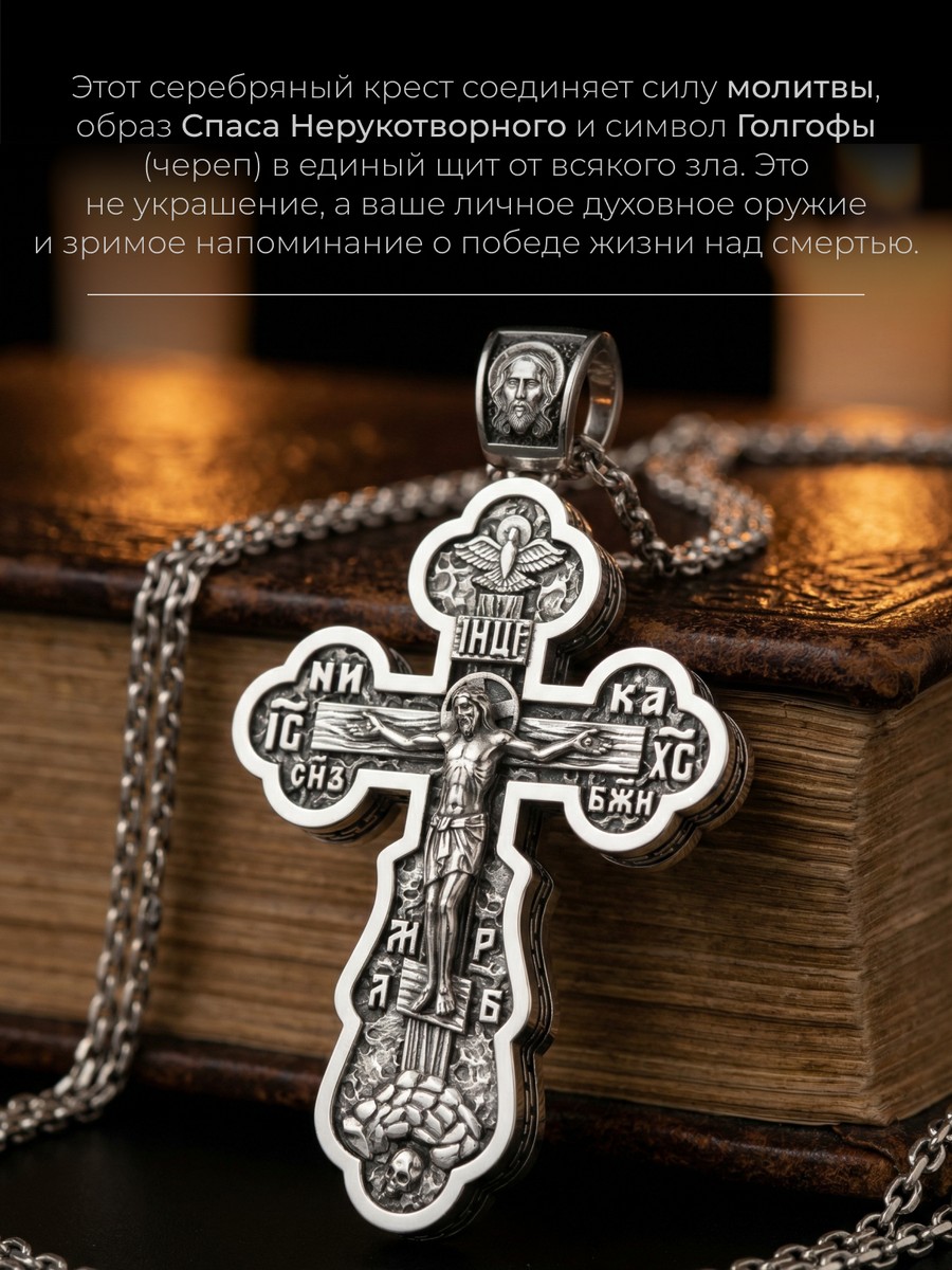 Подвеска 1001 выполнена из серебра 925 пробы и украшена натуральными вставками: б/к Животворящему Кресту Господню карат