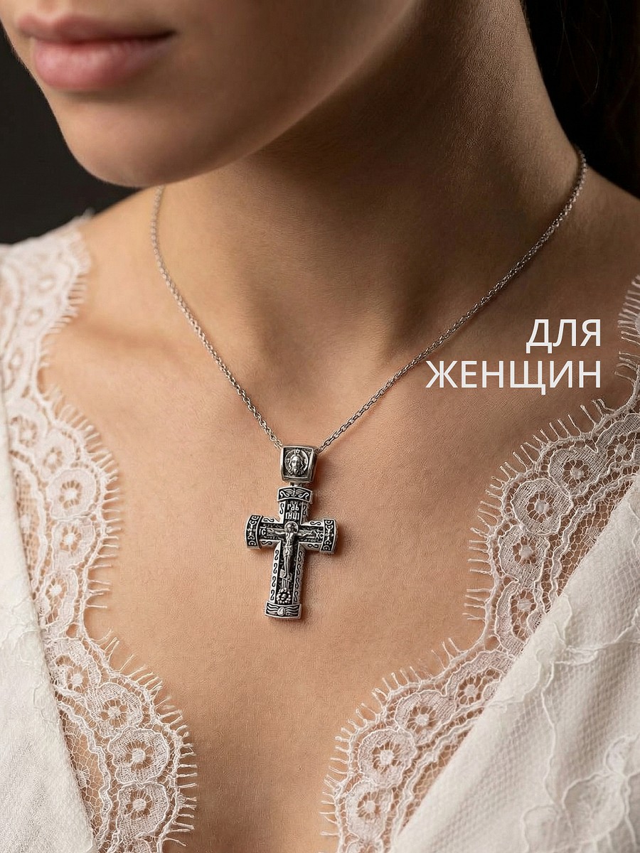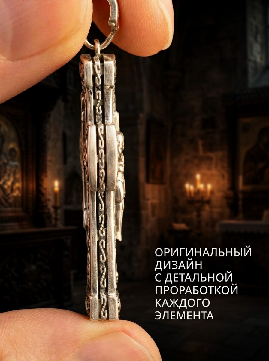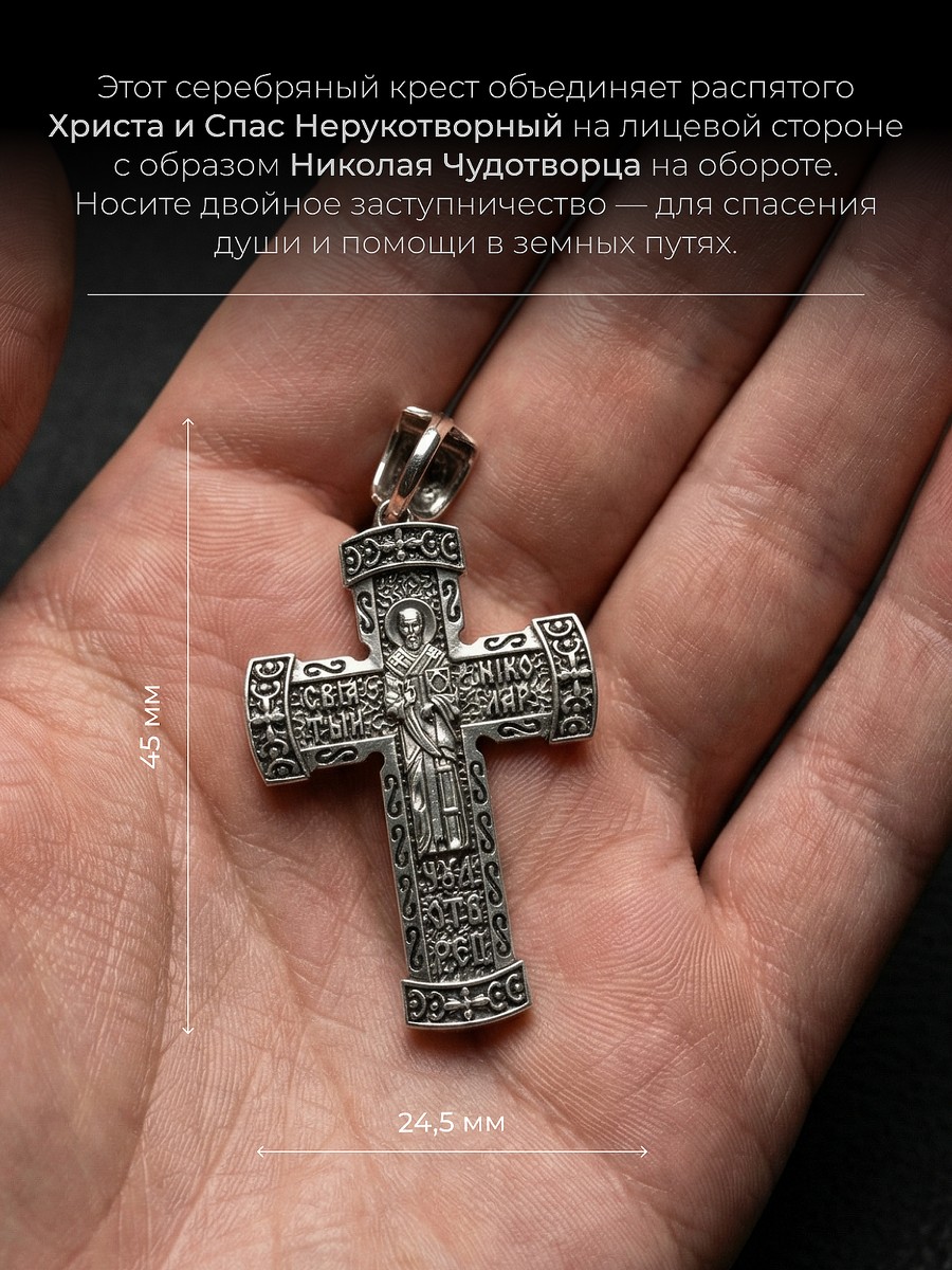 Подвеска 1002 выполнена из серебра 925 пробы и украшена натуральными вставками: б/к Николай Чудотворец карат
