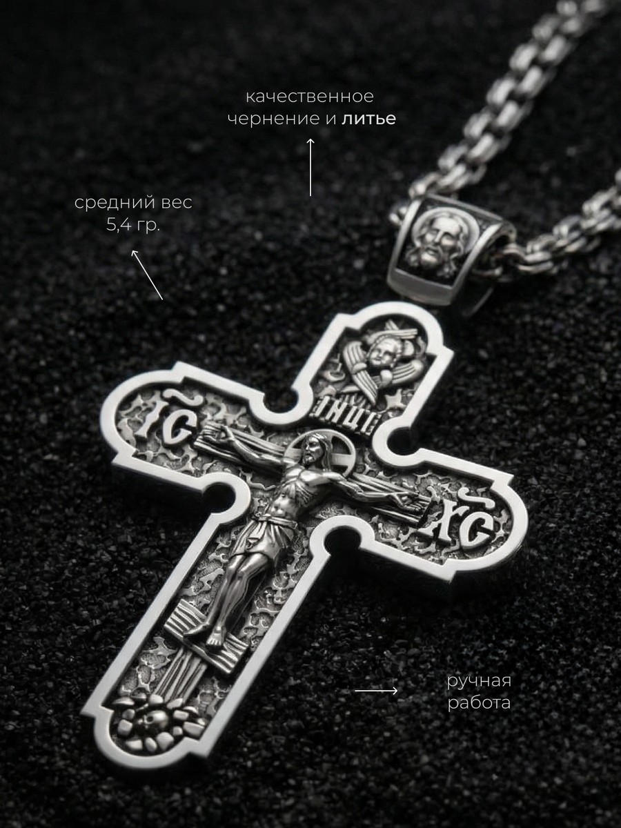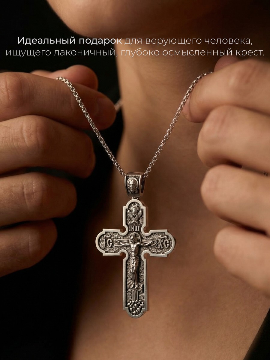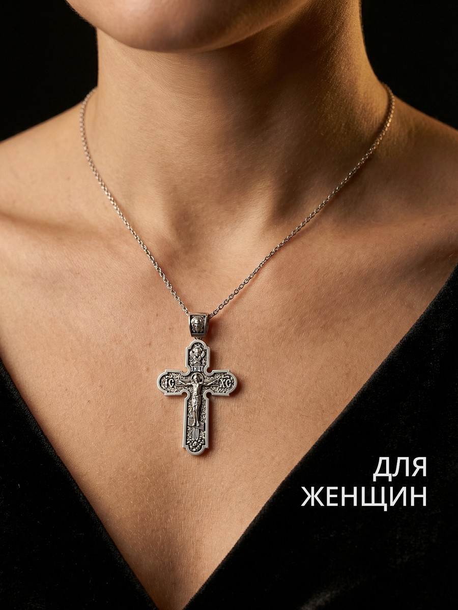 Подвеска 1003 выполнена из серебра 925 пробы и украшена натуральными вставками: б/к Животворящему Кресту Господню карат