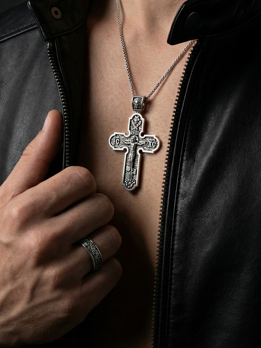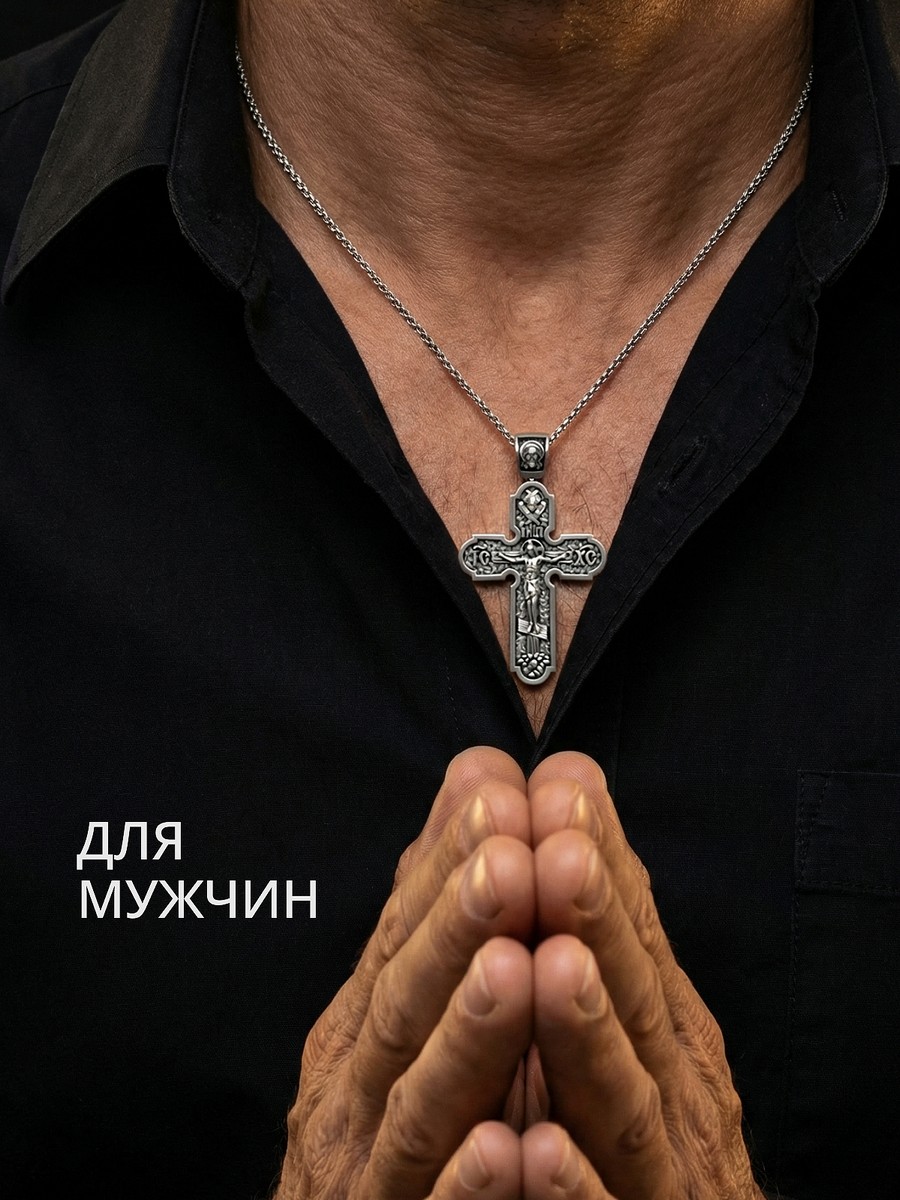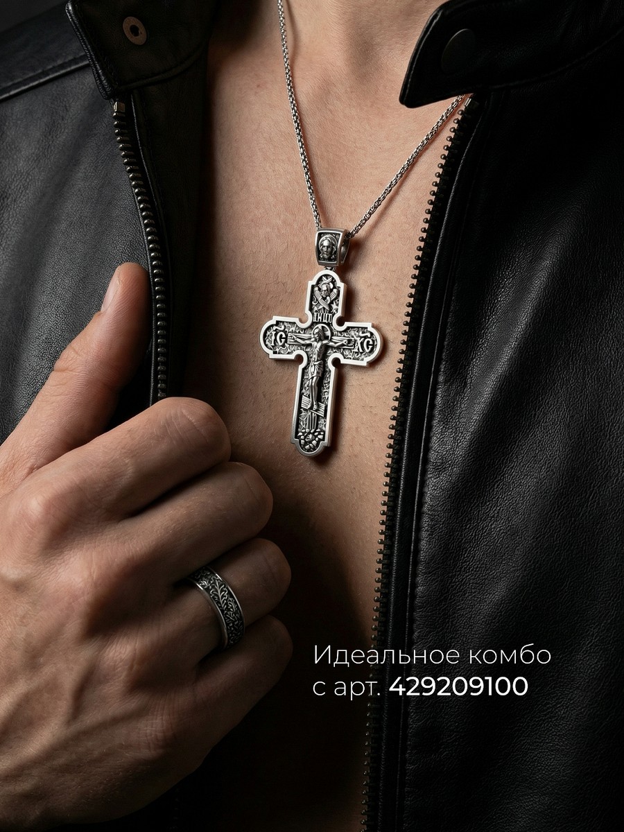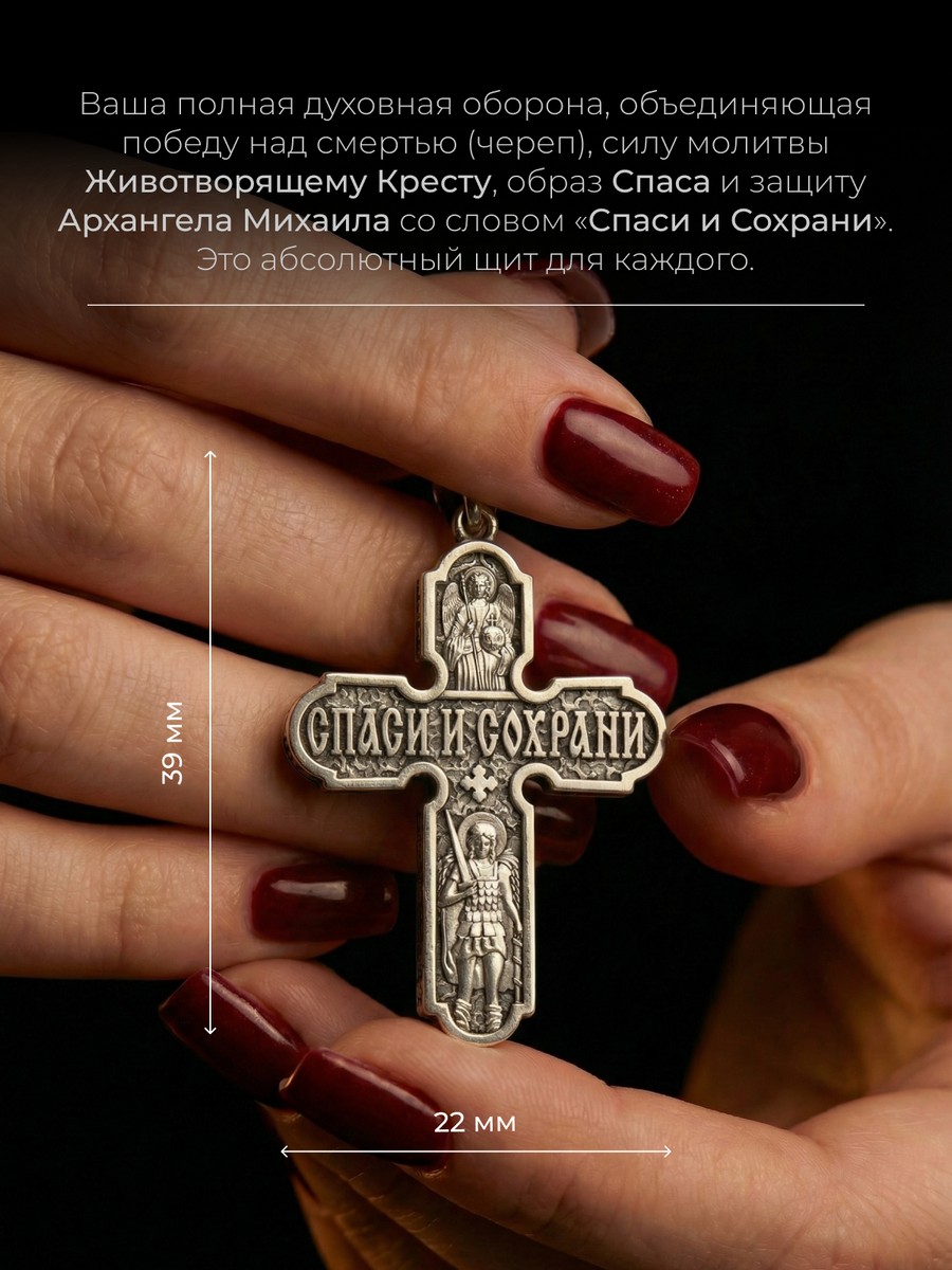 Подвеска 1003 выполнена из серебра 925 пробы и украшена натуральными вставками: б/к Животворящему Кресту Господню карат