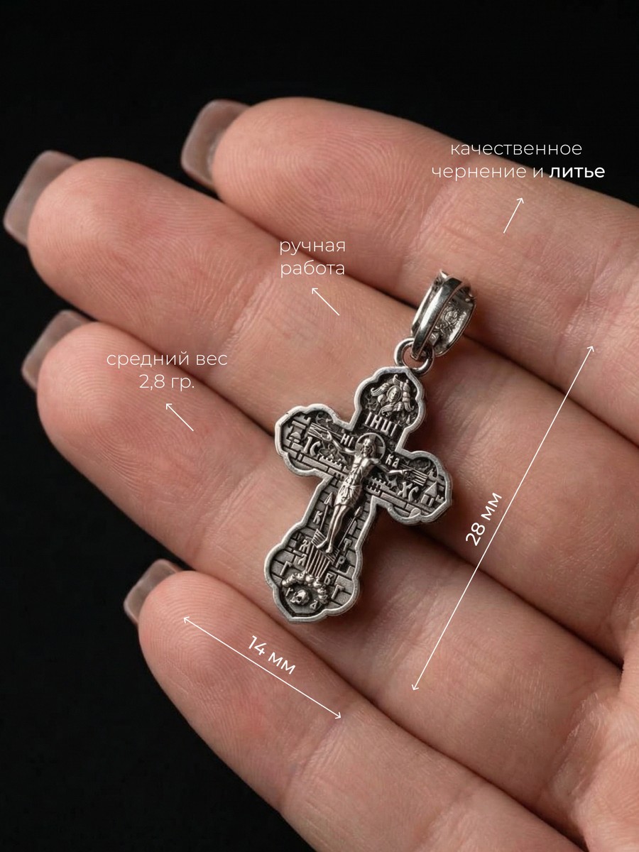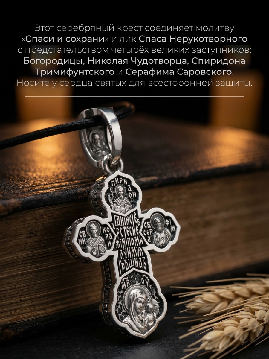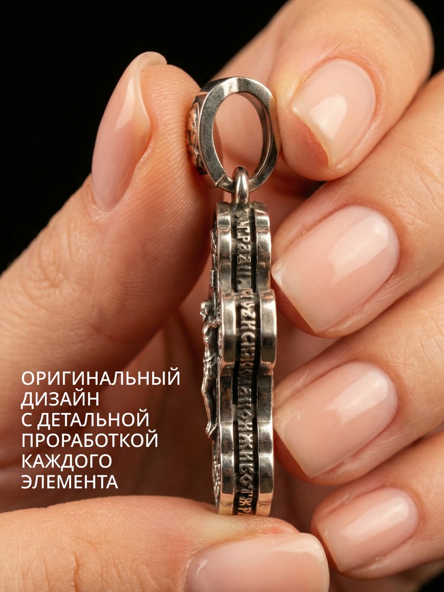 Подвеска 1007 выполнена из серебра 925 пробы и украшена натуральными вставками: б/к Господи Спаси и сохрани карат