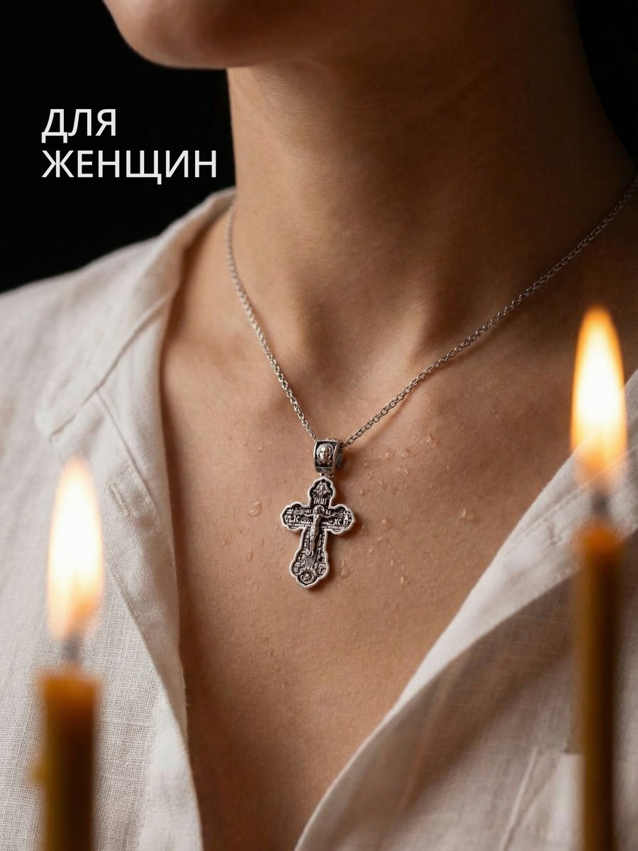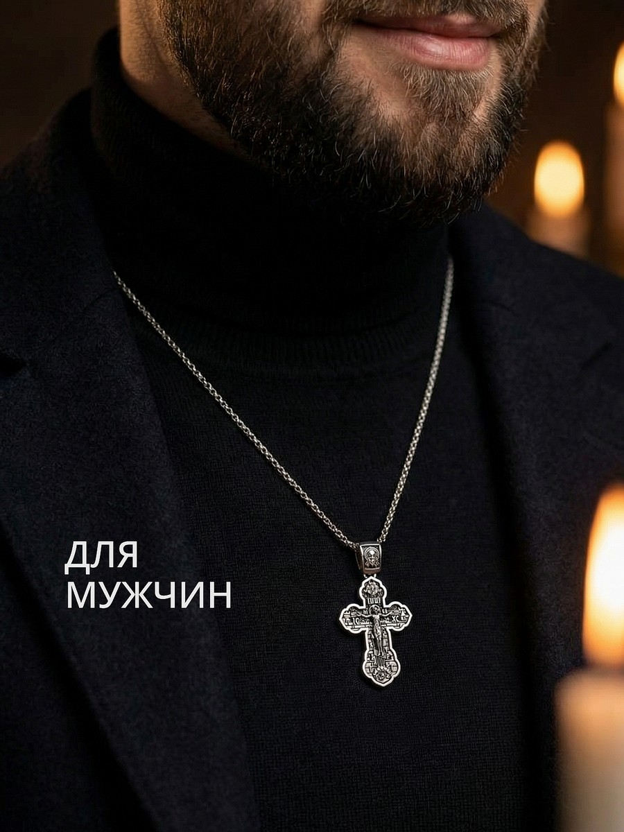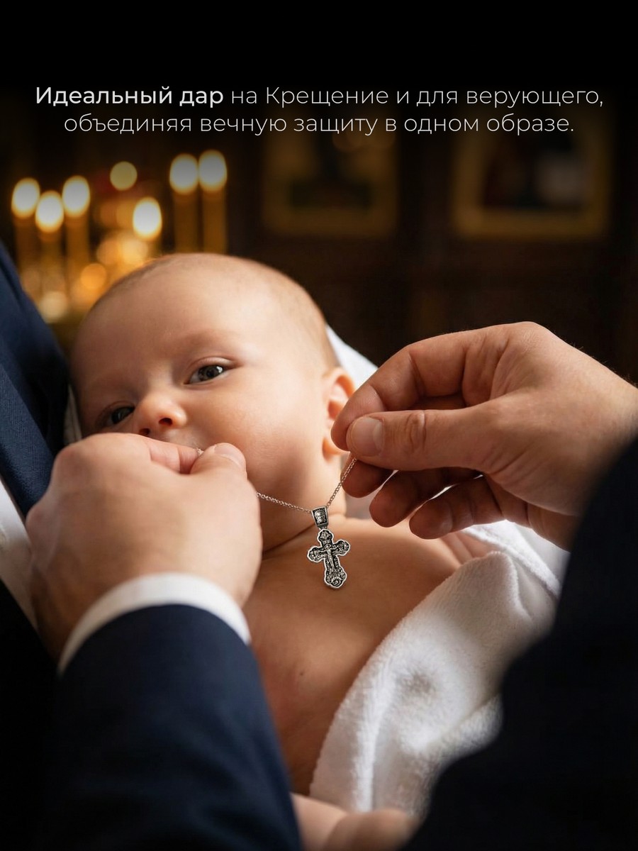 Подвеска 1007 выполнена из серебра 925 пробы и украшена натуральными вставками: б/к Господи Спаси и сохрани карат