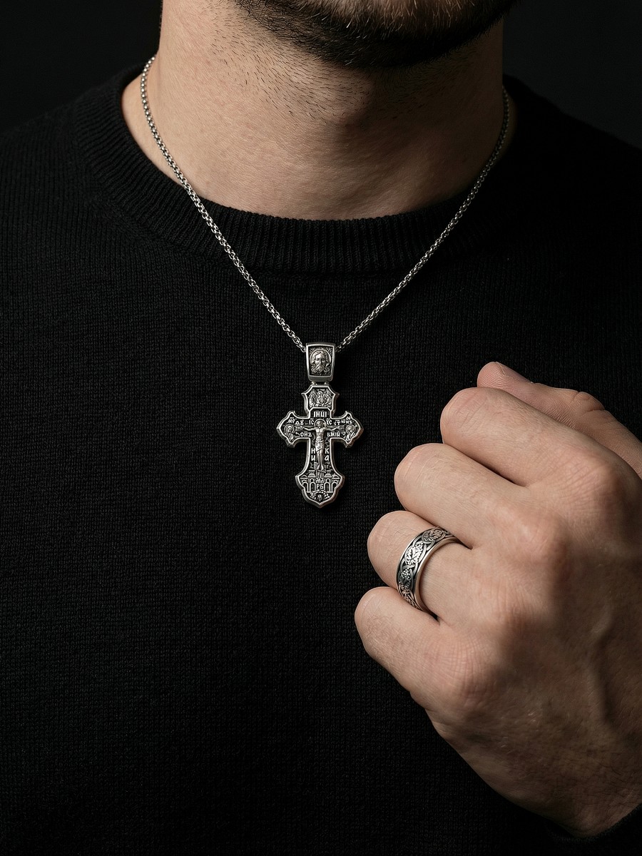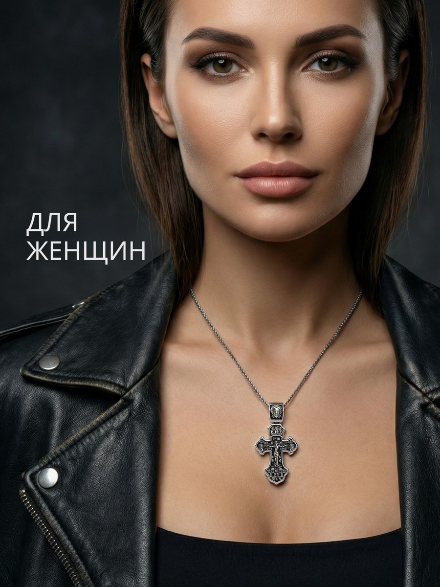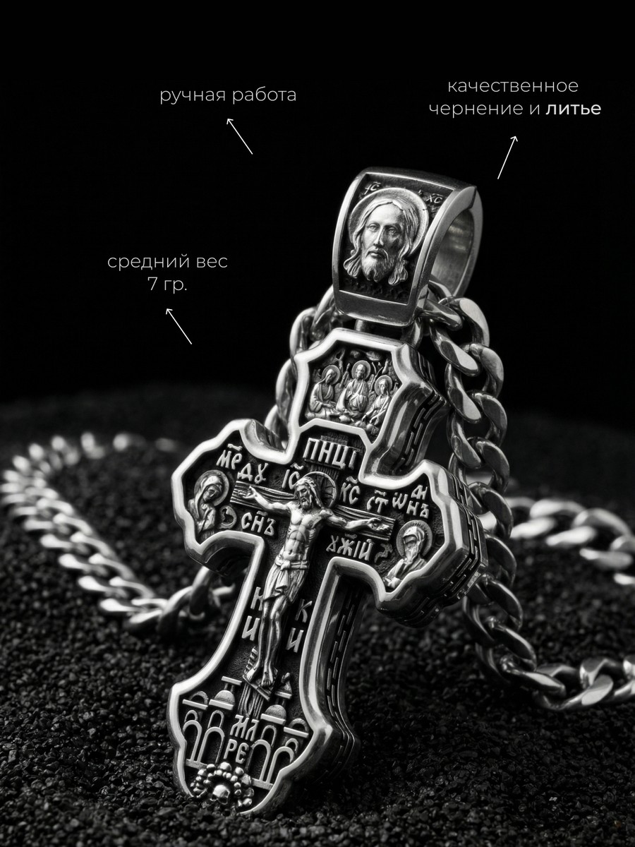 Подвеска 1012 выполнена из серебра 925 пробы и украшена натуральными вставками: б/к Животворящему Кресту Господню карат