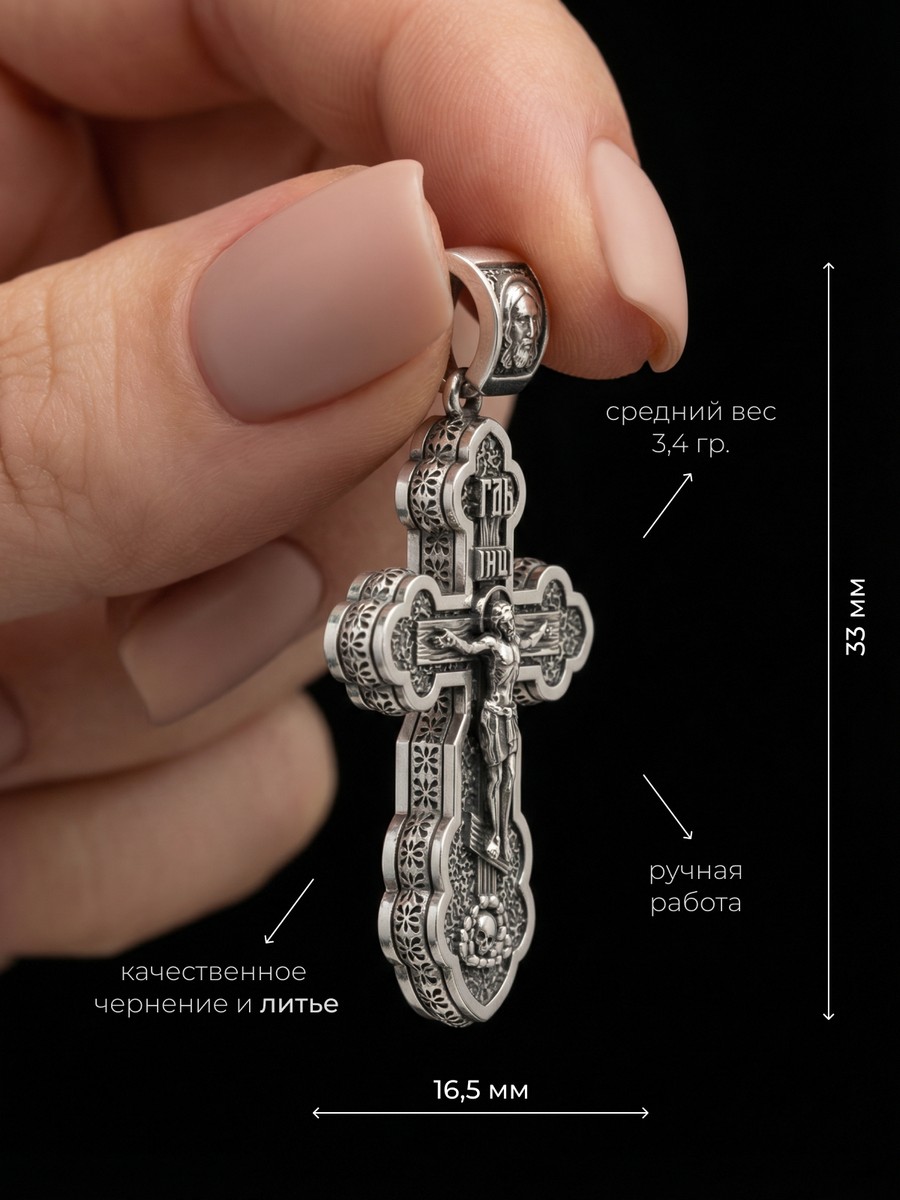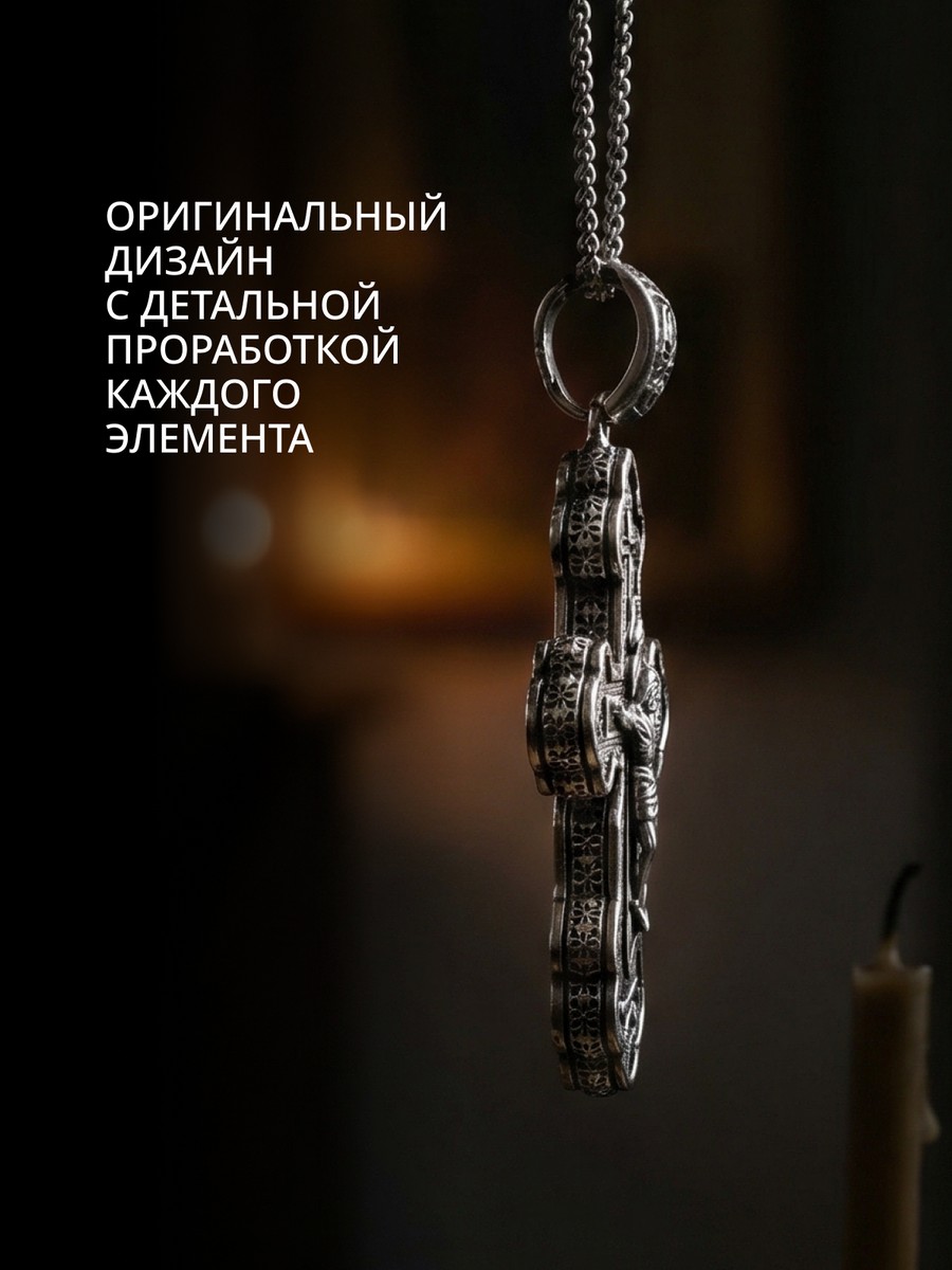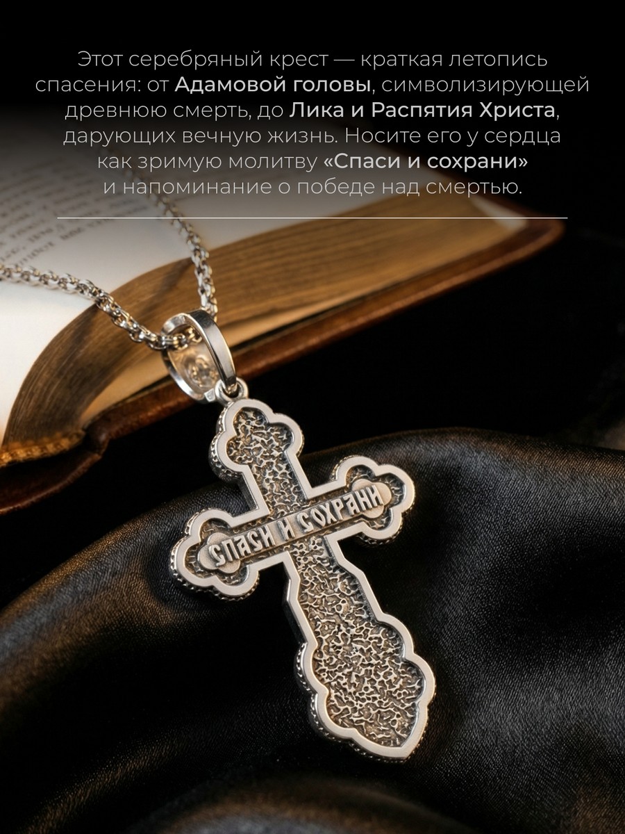 Подвеска 1014 выполнена из серебра 925 пробы и украшена натуральными вставками: б/к Господи Спаси и Сохрани карат