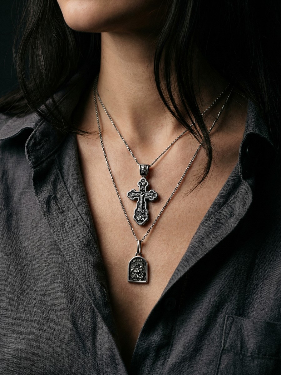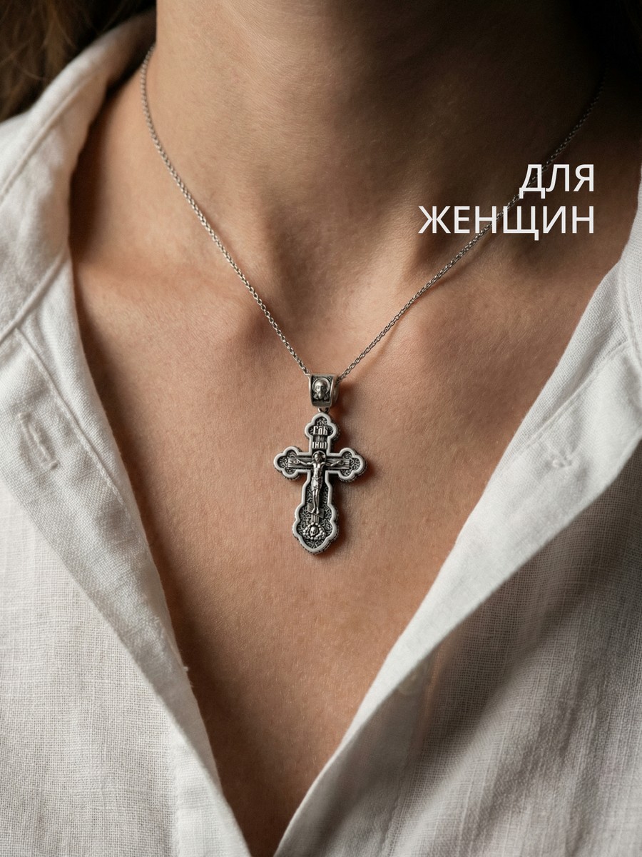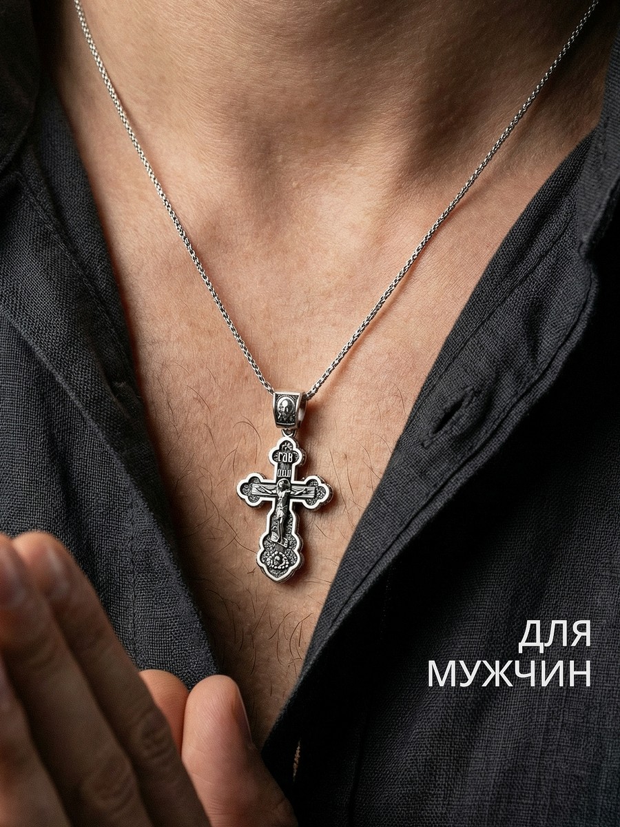 Подвеска 1014 выполнена из серебра 925 пробы и украшена натуральными вставками: б/к Господи Спаси и Сохрани карат