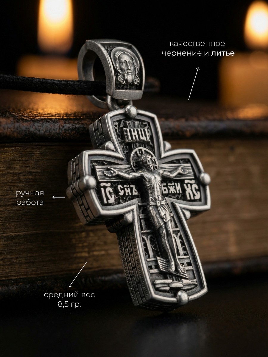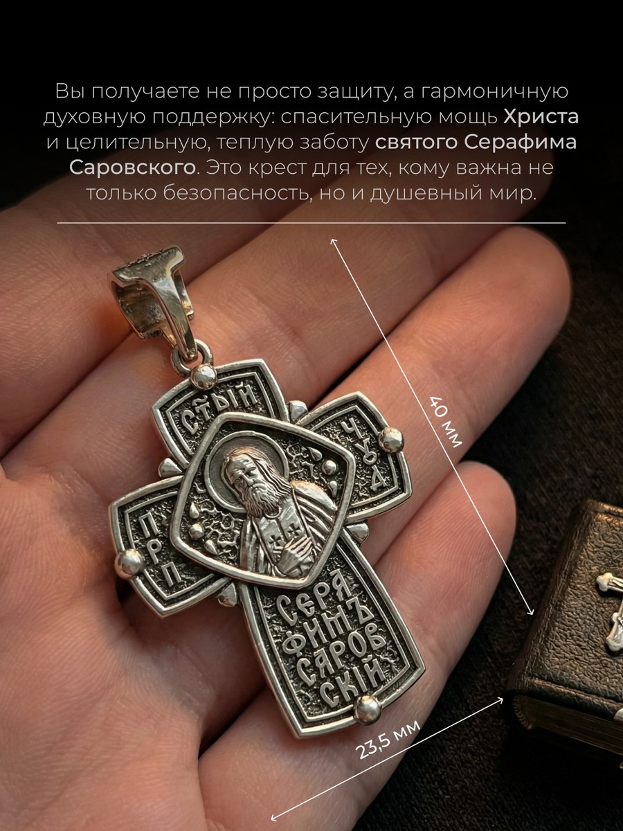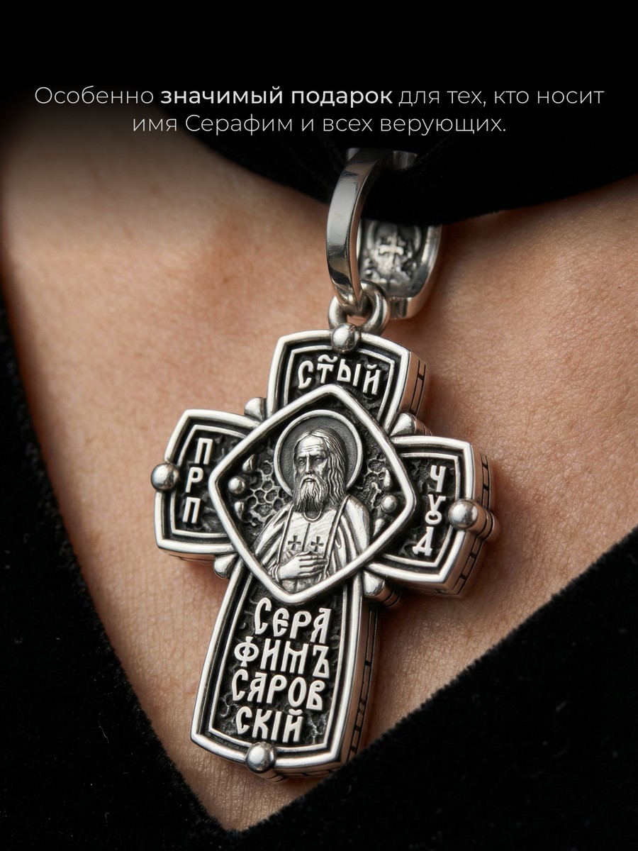 Подвеска 1015 выполнена из серебра 925 пробы и украшена натуральными вставками: б/к Серафим Саровский карат