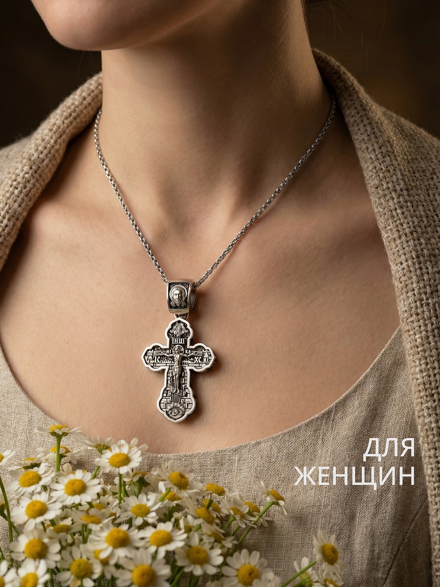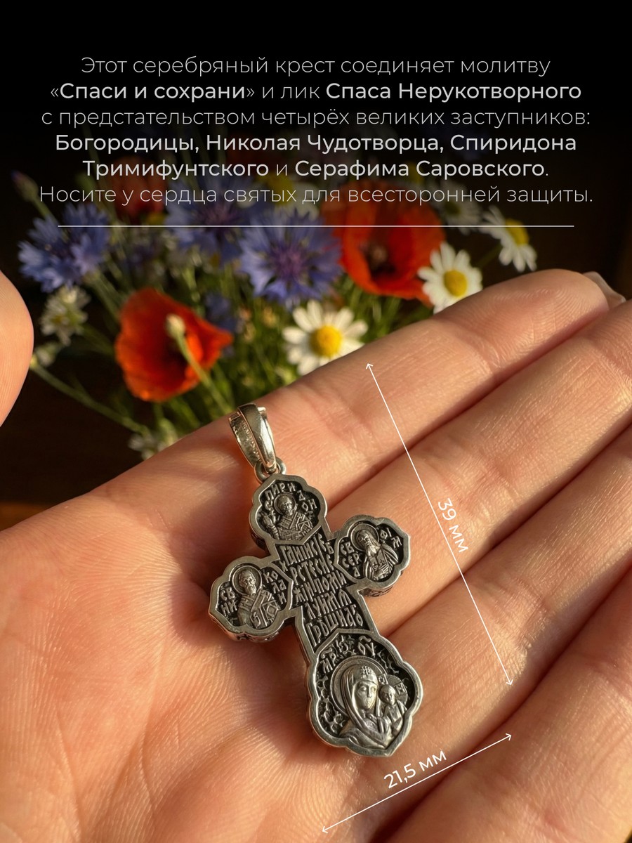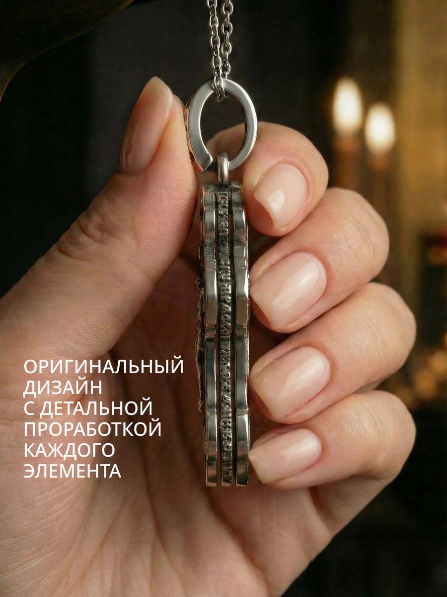 Подвеска 1016 выполнена из серебра 925 пробы и украшена натуральными вставками: б/к Господи Спаси и Сохрани карат