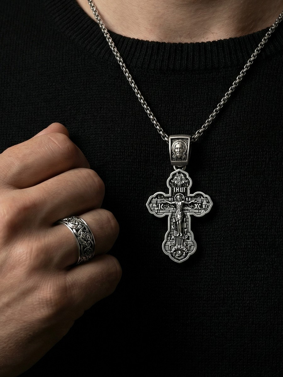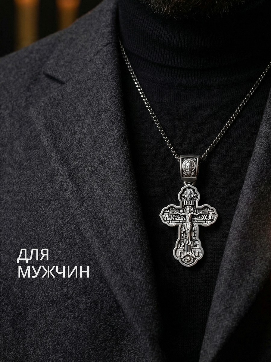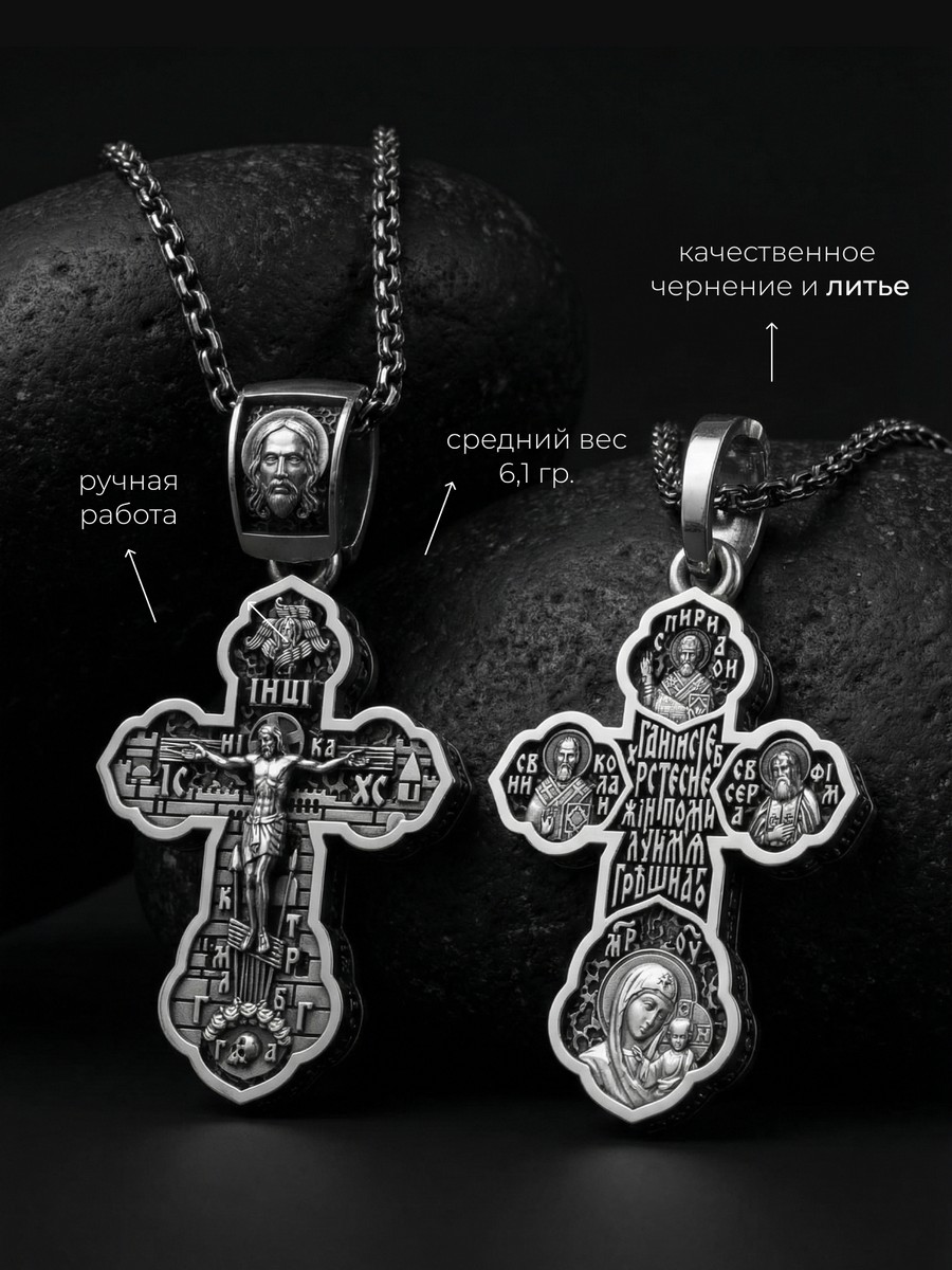 Подвеска 1016 выполнена из серебра 925 пробы и украшена натуральными вставками: б/к Господи Спаси и Сохрани карат