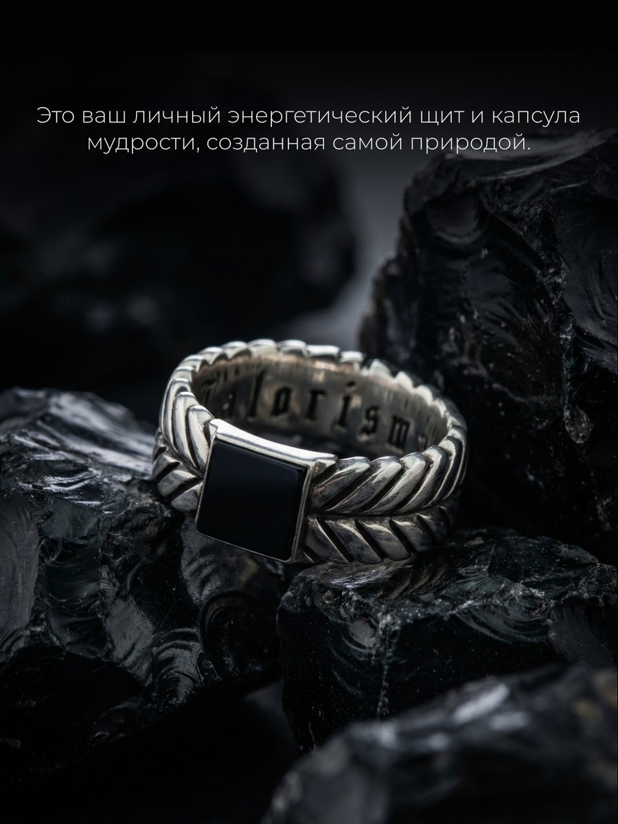 Кольцо 1901Агч выполнено из серебра 925 пробы и украшено натуральными вставками: 1 Агат черный пластина 7 мм на 7 мм, вес 1,294 карат