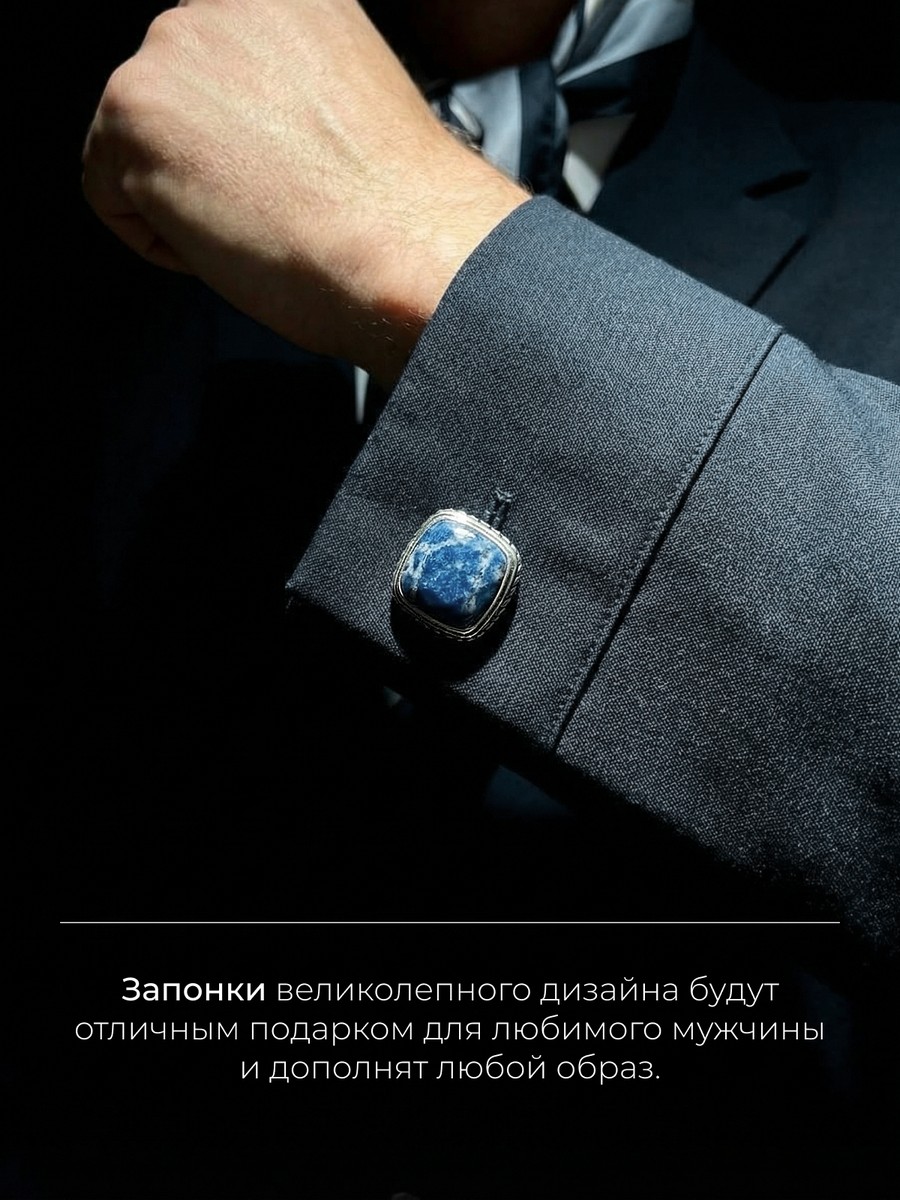 Запонки 1747Ла выполнены из серебра 925 пробы и украшены натуральными вставками: 2 Лазурит 14 мм на 14 мм, вес 3.36 карат
